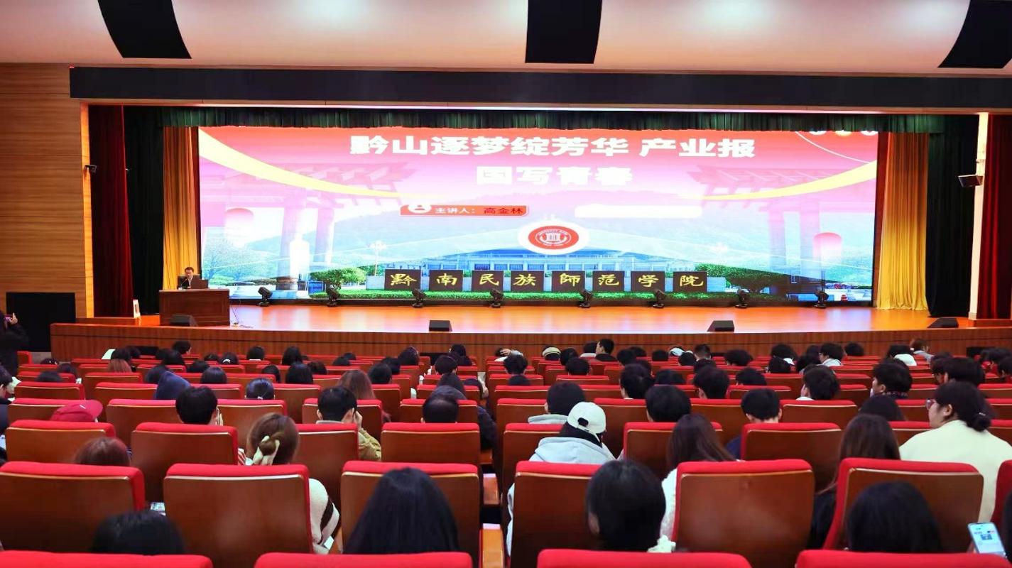 本网讯 2025年11月5日,美加墨世界杯官方网站在综合实训楼裙楼一楼报告厅成功举办“黔山逐梦绽芳华,产业报国写青春”主题讲座。本次讲座特邀贵州胜威福全化工有限公司黔南片区采购经理高金林担任主讲,讲座由应用化学系主任孙婷主持,应用化学专业全体员工参加。