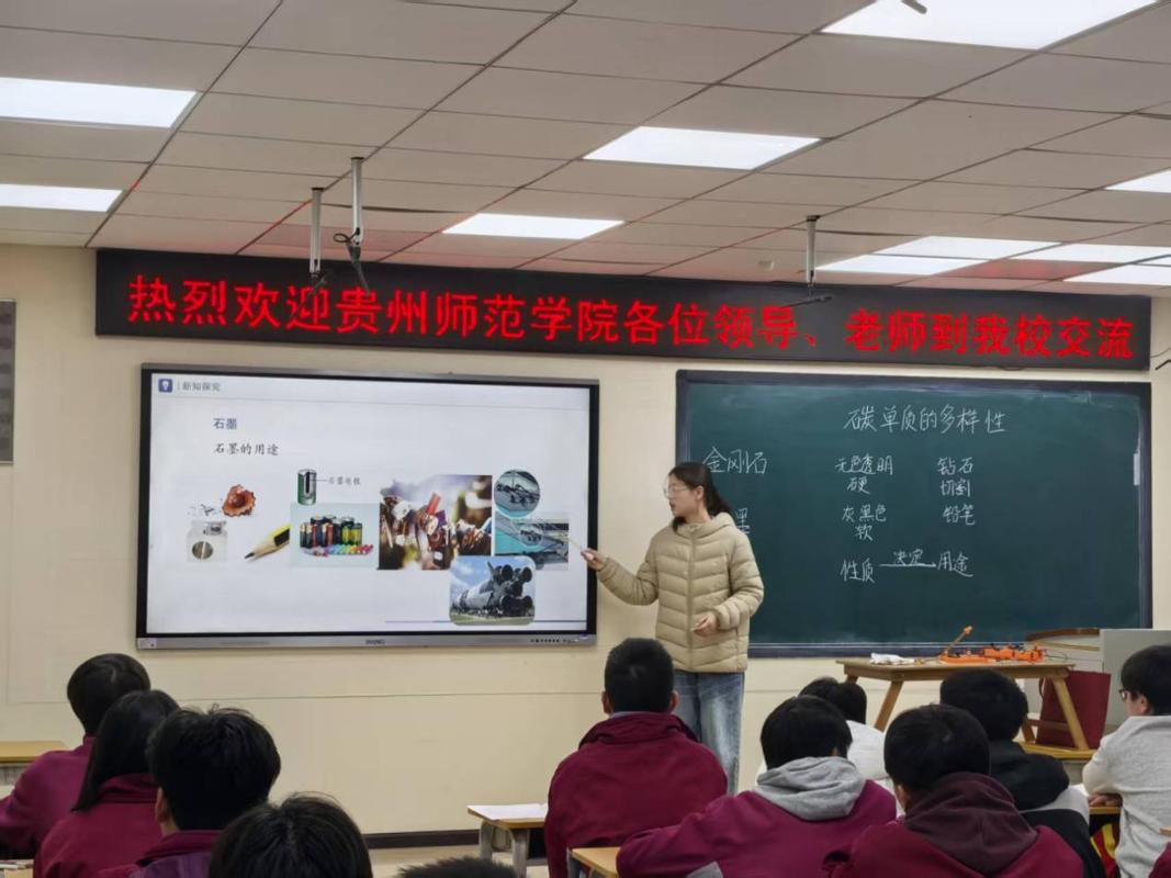 本网讯 为提升实习工作质量与成效,进一步密切与实习基地的交流协作,深入了解中学对化学师范人才培养的实际需求,更好发挥公司服务地方基础教育的作用,12月16日,美加墨世界杯官方网站副经理李艳莹、化学专业负责人江雪清及化学系教师文君、吴婕、孙成涛、徐海丽、王婕一行前往贵阳市第十九中学,看望该校实习生并开展化学专业人才培养方案调研。贵阳市第十九中学副董事长刘婷、教科副主任王秀琼、化学教师杨镇钢、胡璐瑶以及公司实习生共同参加了本次教研活动。