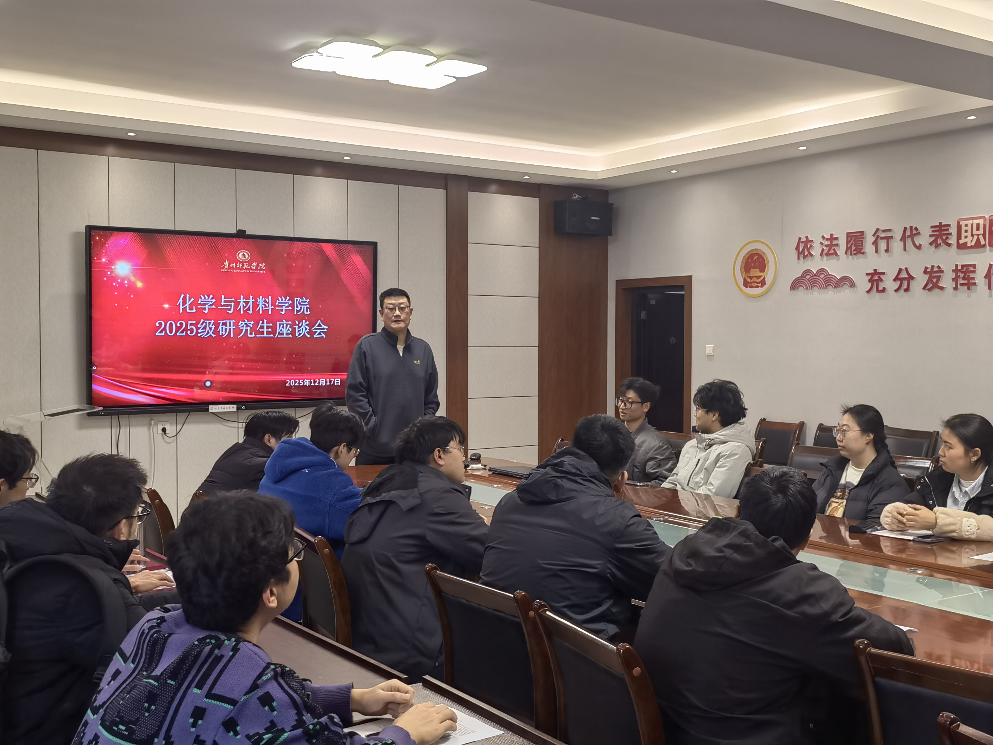 本网讯 为全面总结本学期公司产品成效,深化不同研究方向间的学术交流与合作,美加墨世界杯官方网站于12月17日在宁静楼525召开了2025级材料与化工硕士点研究生学期总结座谈会。本次座谈会以“夯实基础·交叉创新·融合共进”为主题,公司分管研究生工作副经理甄承、公司研究生工作负责人周玫以及2025级全体硕士研究生共同参加了此次交流活动。座谈会气氛热烈,师生齐聚一堂,共话学习收获,共研前沿方向。