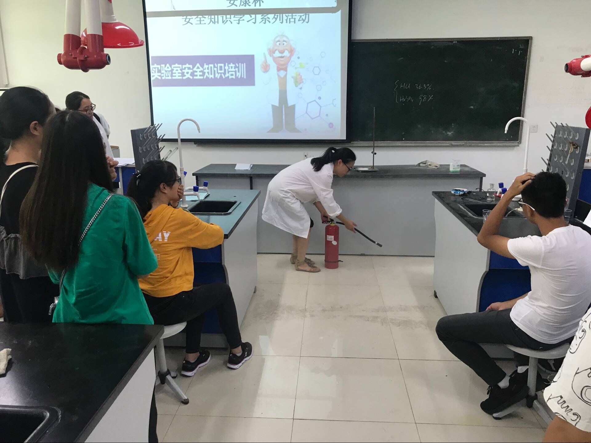 其次,给新同学们讲解实验室安全知识。以一系列真实实验室安全事例为基础,结合公司实验室安全工作实际,对实验室安全基本概念进行全方位、多角度的剖析,并深入浅出地讲解了危险化学品使用规范、实验操作技术规范等方面的安全知识。同学们认真聆听,将遇险时自救的方法牢记于心。
