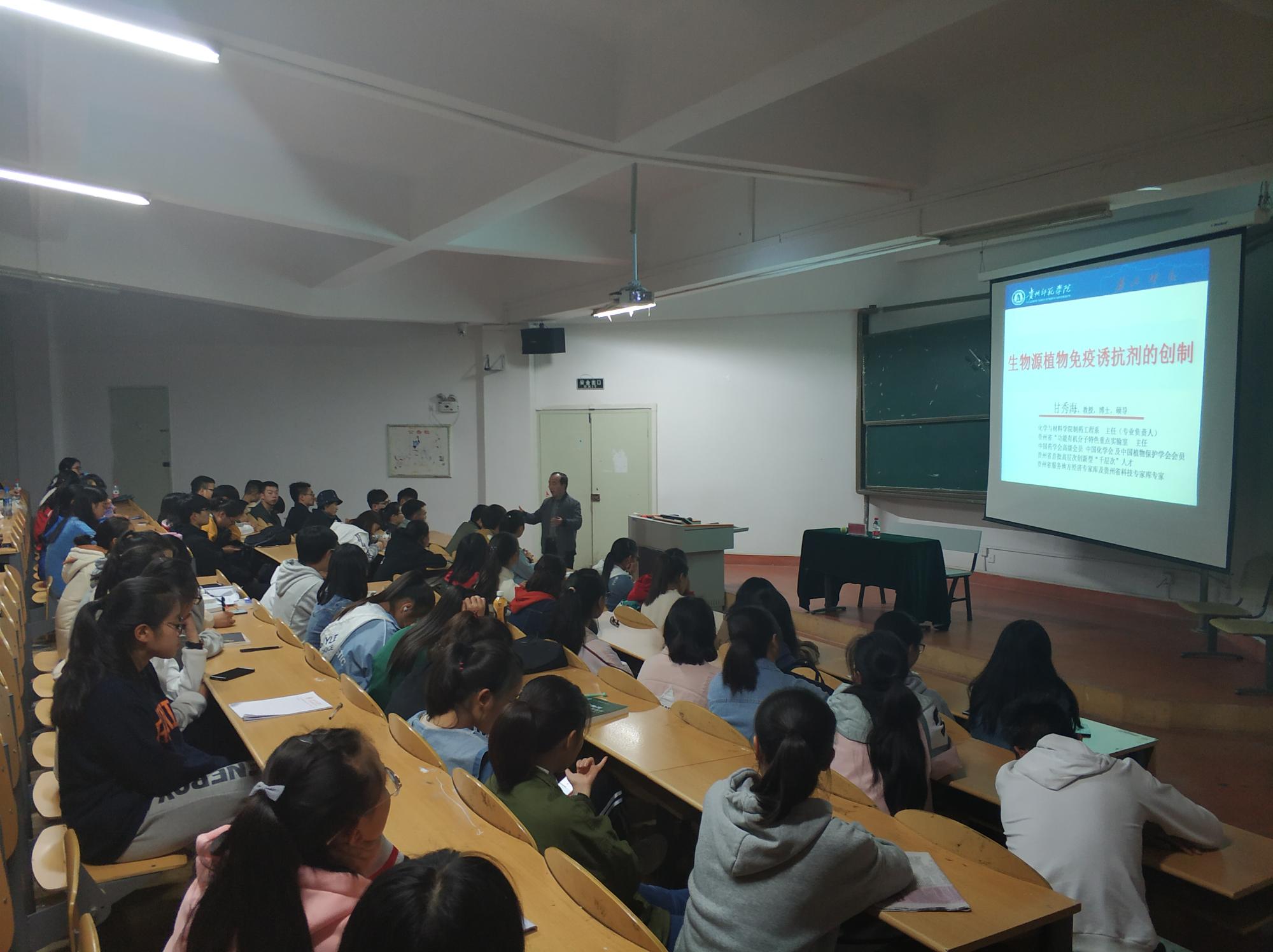 为增强老员工对生物源植物免疫诱抗剂的创制的了解,拓宽老员工的知识面。10月26日晚,美加墨世界杯官方网站甘秀海教授于宁静楼535教室举办了“生物源植物免疫诱抗剂的创制”专题讲座。18级材料科学与工程专业、制药工程专业的同学聆听了本次讲座。