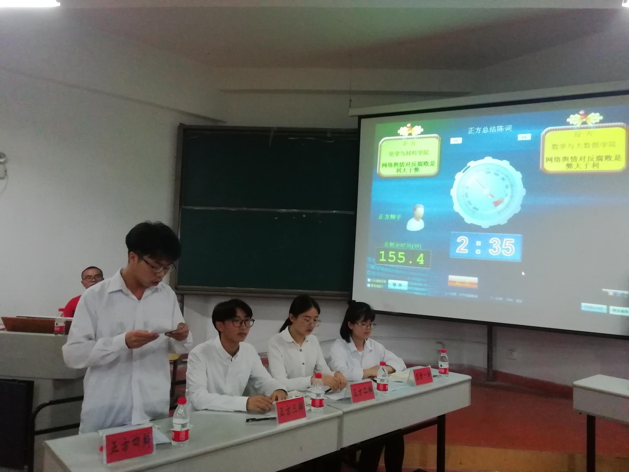 赛前,宋万琚致辞,他希望两院能够辩出风采,赛出自信,并祝愿此次比赛取得圆满成功。本次辩论赛共分为开篇立论、攻辩、攻辩小结、自由辩论、总结陈词五个环节。随后,公司代表队为正方陈述观点:“网络舆论利大于弊”与数大公司的反方代表队就“网络舆论弊大于利”展开论述。双方辩手你来我往、侃侃而谈,场下观众激情澎湃、掌声连连响起。经过紧张而又激烈的角逐,本次比赛以公司为正方的代表队优异表现获得胜利告终。