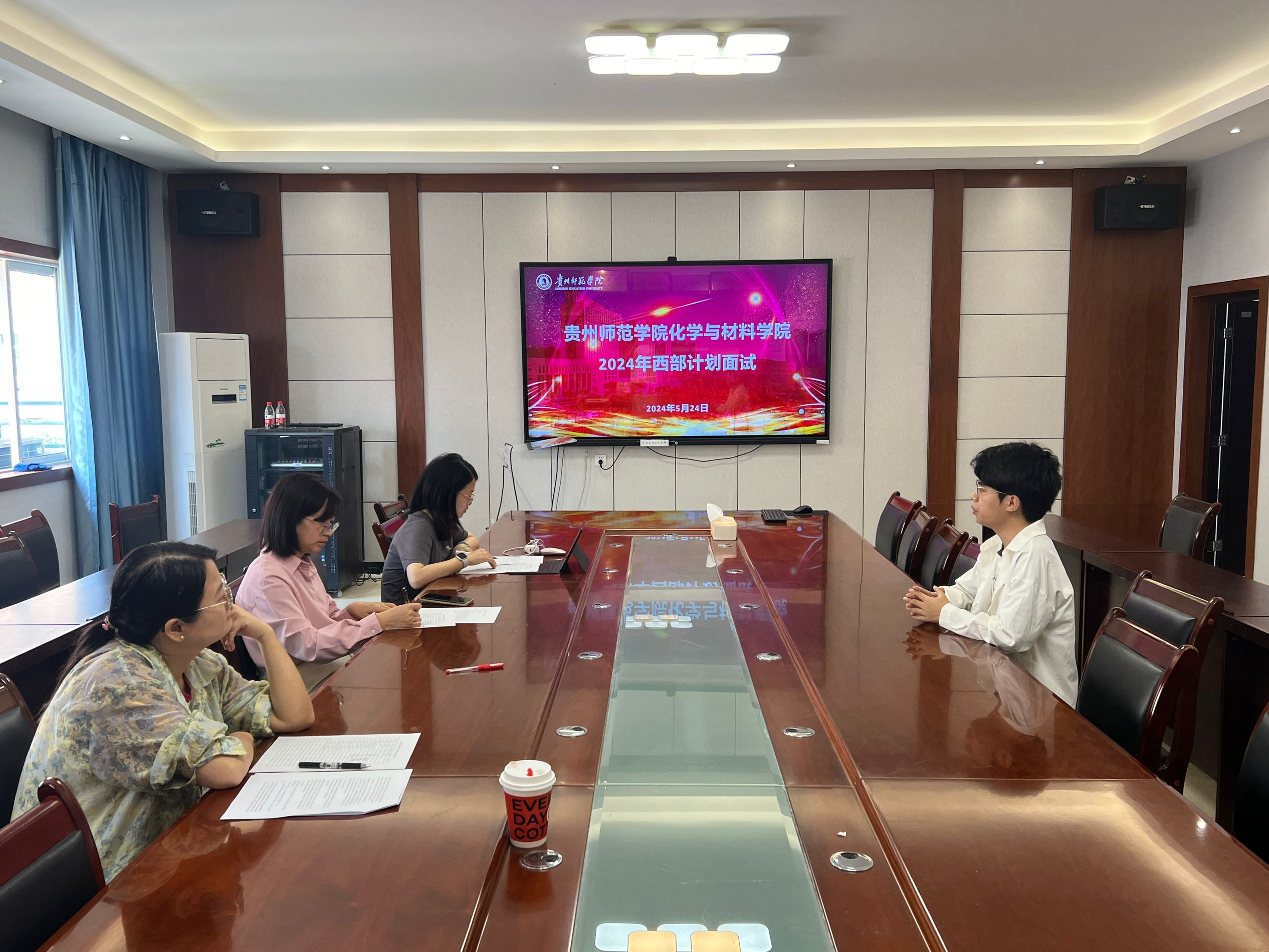 5月24日上午,化学与材料公司2024年西部计划面试在宁静楼525会议室举行。公司党委副书记邹万梅、团委负责人邵琳和教学秘书吴红庆任面试考官。