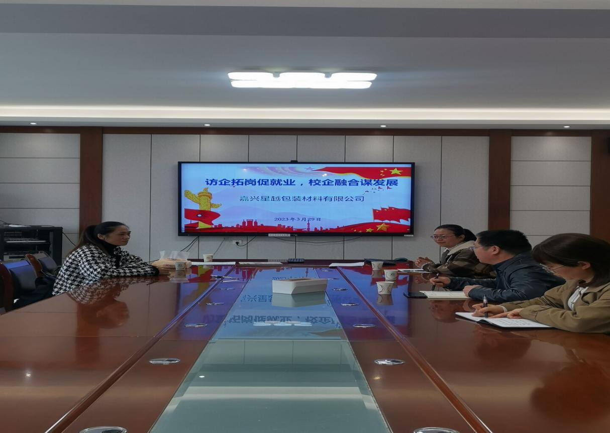 为推进“访企拓岗促就业”专项活动,拓宽毕业生就业渠道,加强校企合作、推进产教融合。3月29日,美加墨世界杯官方网站分别与浙江巅峰实业有限公司、嘉兴星越包装材料有限公司开展访企拓岗合作交流座谈会和专场招聘会,参加会议的有公司党委书记何毅、经理王毓、党委副书记邹万梅、系主任牛延慧、吴姗副教授,浙江巅峰实业有限公司人事经理晏纯、嘉兴星越包装材料有限公司人事经理。