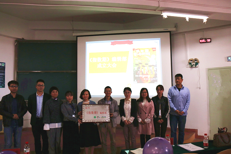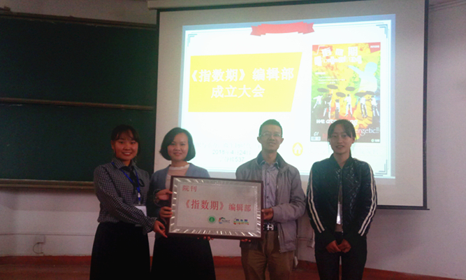 大会一共分为四项。第一项,由社团指导老师韩晗为大家讲解了《指数期》杂志的创刊理念及我们需要一个舆论平台来展现师生风采,其重在自我思考及分享观点。第二项负责人唐慧玲对杂志的主要板块、工作规模、发行方式、征稿策略等做出了详细介绍。第三项宋万琚对《指数期》杂志编辑部成立致辞并给予鞭策,首先先对社团的工作成果给予了肯定;其次他指明了杂志社的工作方向,及创建师生互动、表达观点、展现工作成效、了解科研成果的平台;最后则代表公司对杂志提出了工作要求:一是要坚持顺应时代要求在党的领导下认真开展工作,二是坚持正确的舆论导向、弘扬正能量,三是要坚持发扬理科生的特点,实事求是、求真务实、精益求精的精神,四是要坚持把杂志办好、办出水平、办出特色。第四项,由宋万琚及周旭清共同授牌之后圆满结束。