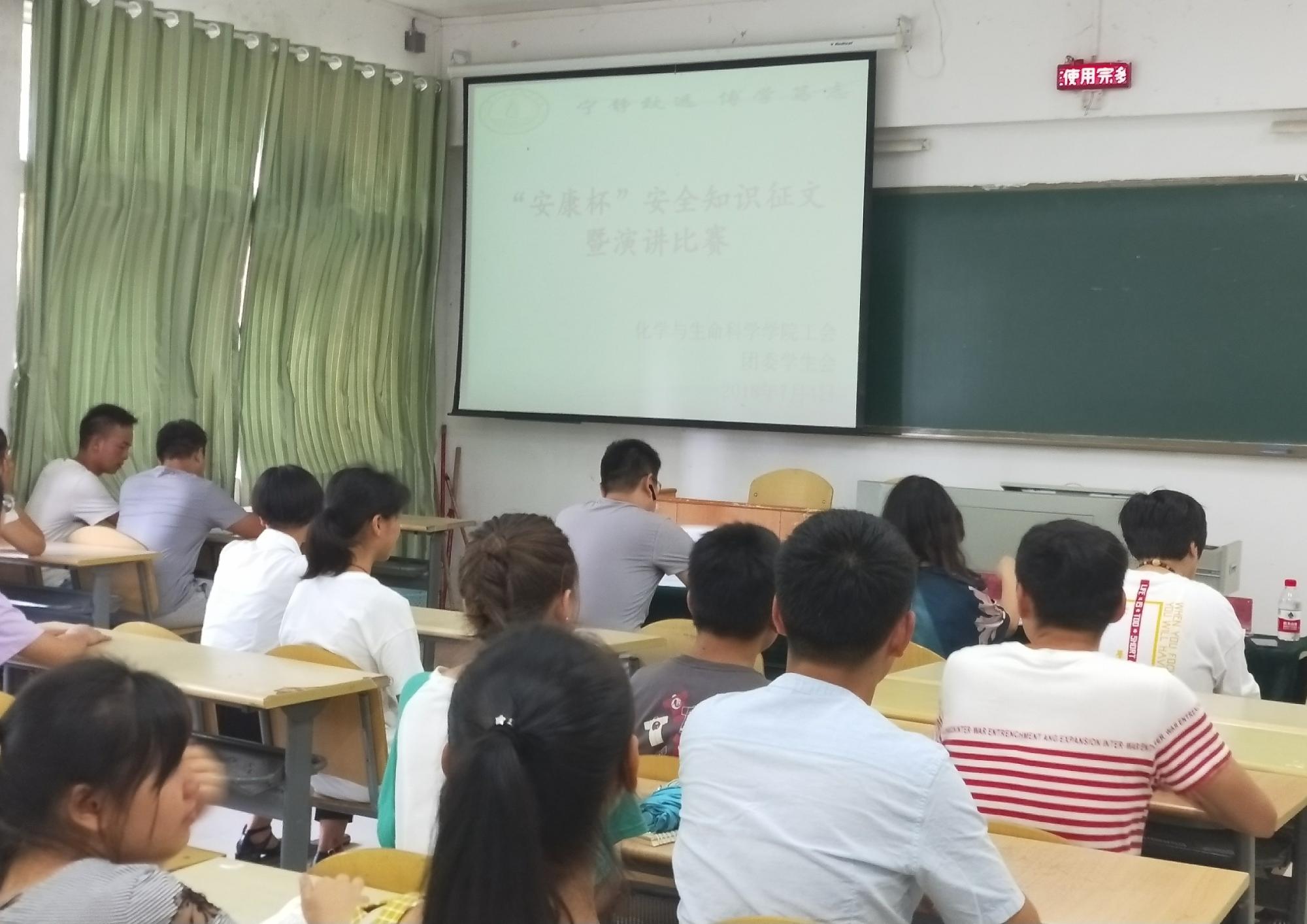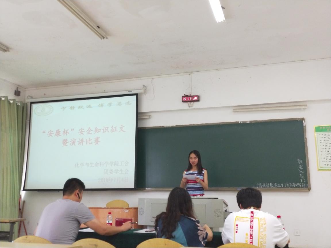 为深入宣传和贯彻落实《劳动法》、《工会法》、《安全生产法》和《职业病防治法》等相关法律法规,增强教职工生的安全卫生法制意识,由校工会主办,化生公司基层工会承办,化生公司基层团委协办的“安康杯”系列活动之“安全靠大家,幸福你我他”主题征文及演讲活动,于7月4日在致远楼513教室举行,公司工会主席冉晓燕及赵雪宇、甄承老师担任本次演讲比赛决赛的评委,2017级化学及生物科学专业员工参加了此次活动。征文内容丰富,形式多样。有题为“居安思危,莫忘校规”,“寝室卫生与安全”,“食品安全是生命的门户”,“浅谈网络安全”等的文章,也有以“瞬间”,“生命如此美丽”为题的诗歌等。从中推选出优秀作品进行演讲比赛。