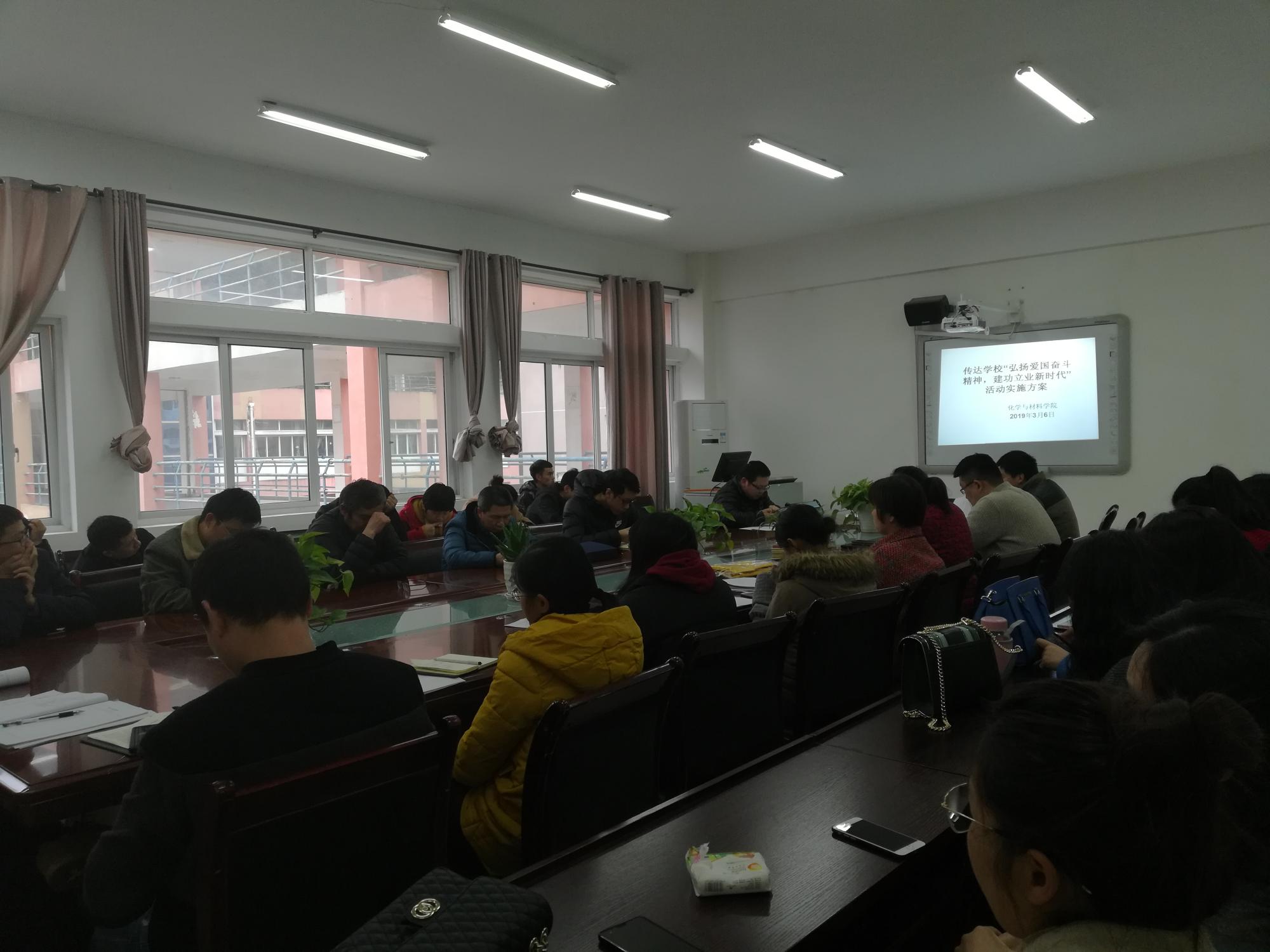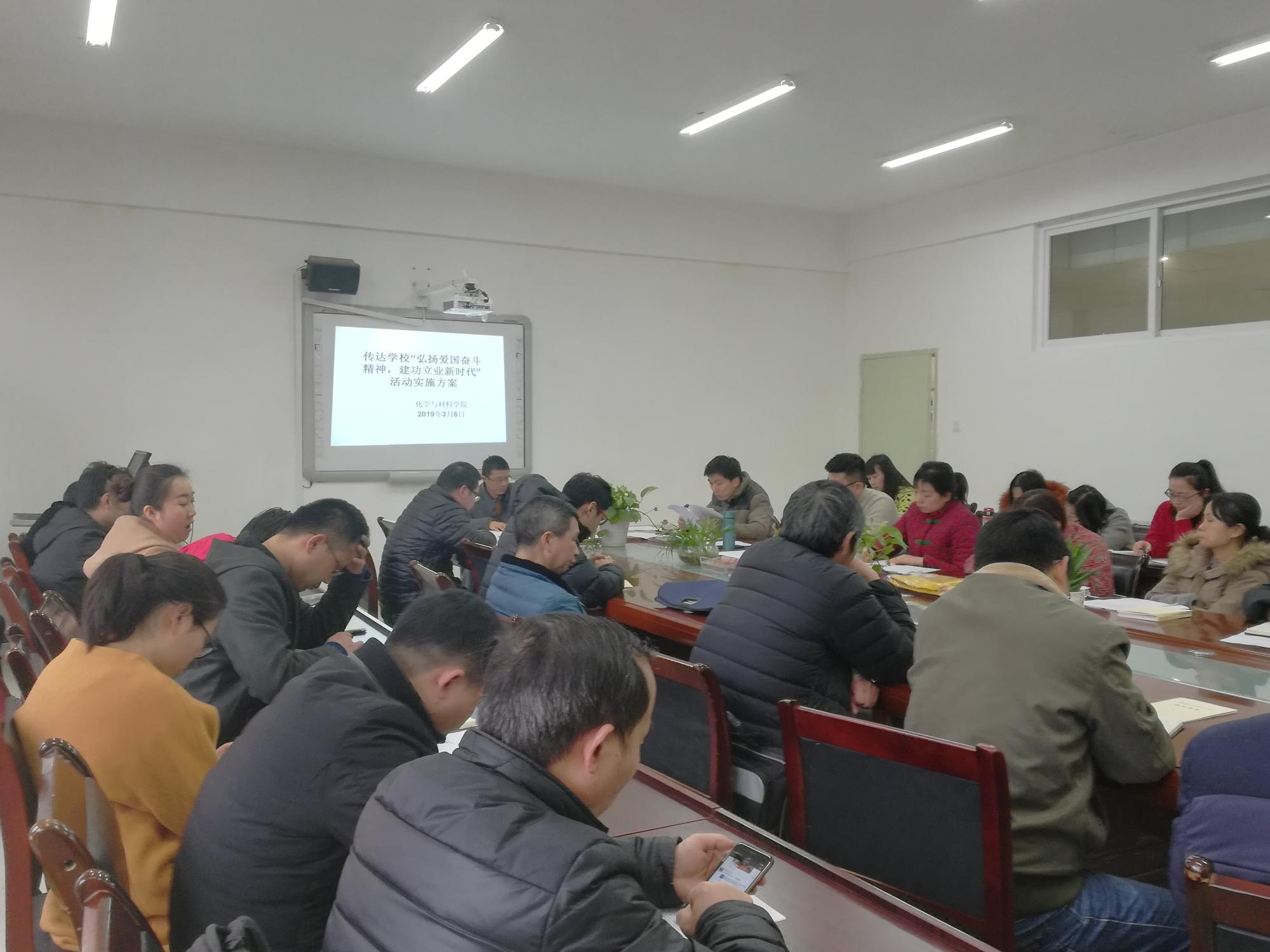 为贯彻习近平总书记关于弘扬爱国奋斗精神、教育工作、人才工作和知识分子工作等系列重要指示精神,紧密结合“不忘初心、牢记使命”主题教育,化材公司于2019年3月6日在宁静楼525召开全体教职工大会。会议由党委副书记、经理宋万琚主持。