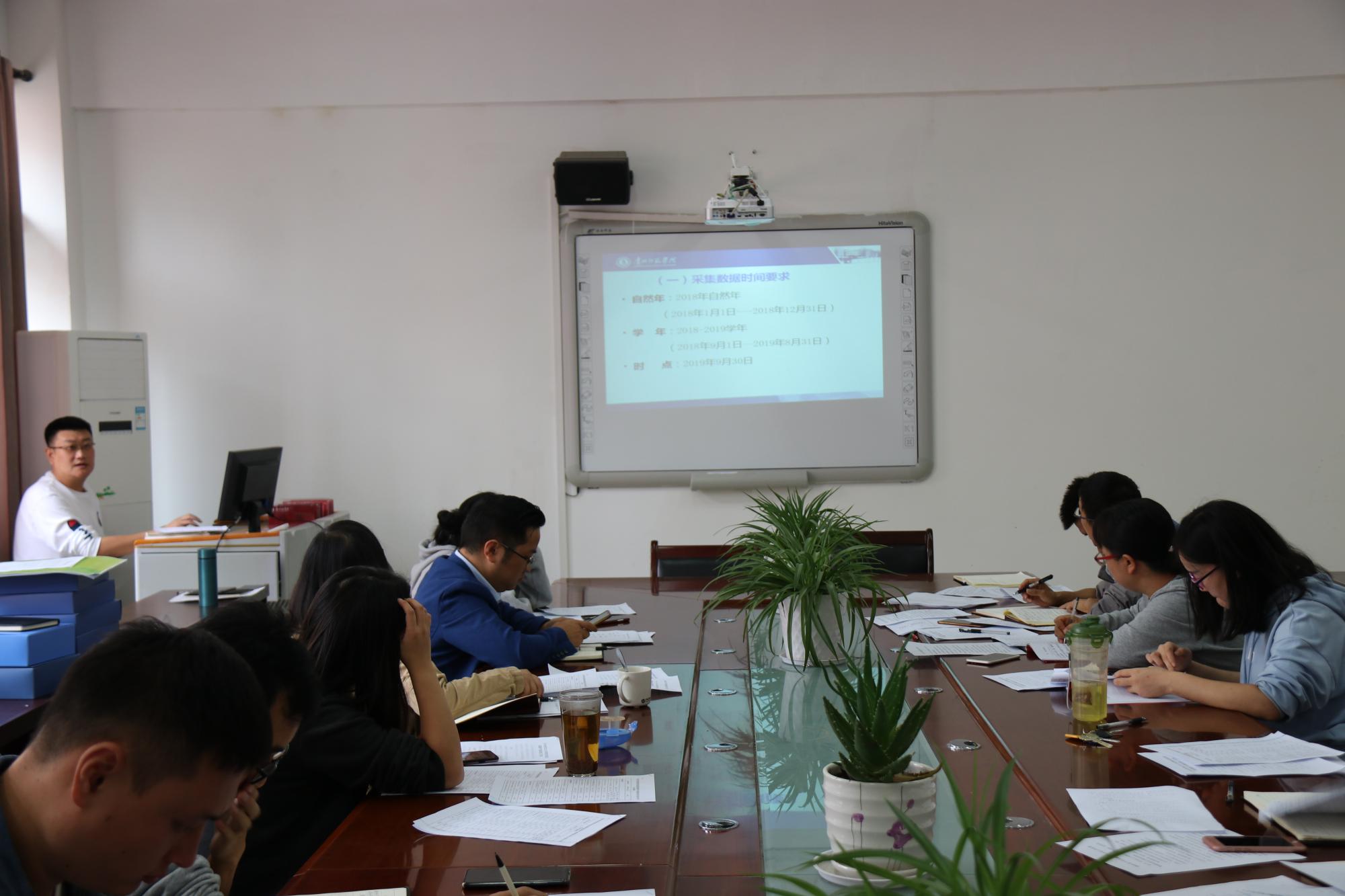 甄承首先向与会人员传达了《关于开展2019年“高等教育质量监测国家数据平台”数据采集工作的通知》文件精神。指出基于“高等教育质量监测国家数据平台”填报的公司本科教学基本状态数据,是今后公司进行质量常态监测、院校评估、专业评估和认证及撰写学年度本科教学质量报告的重要依据。并对数据采集指标责任分解表、数据采集工作进度和有关问题向与会人员进行了详细解读。