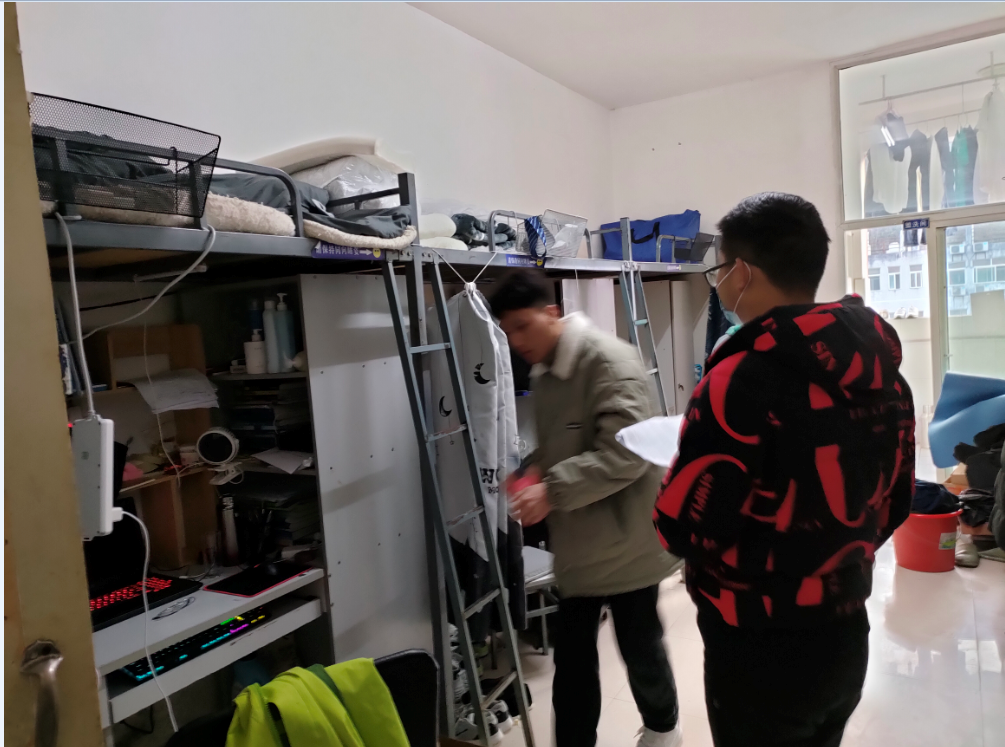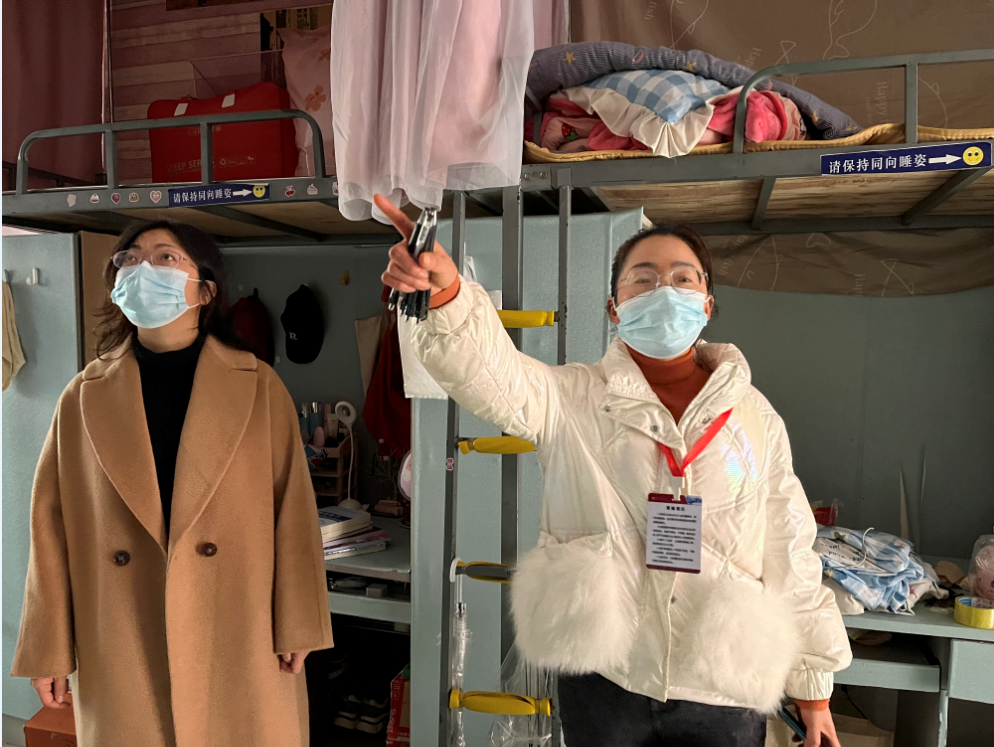 图1.何毅、邹万梅检查宿舍