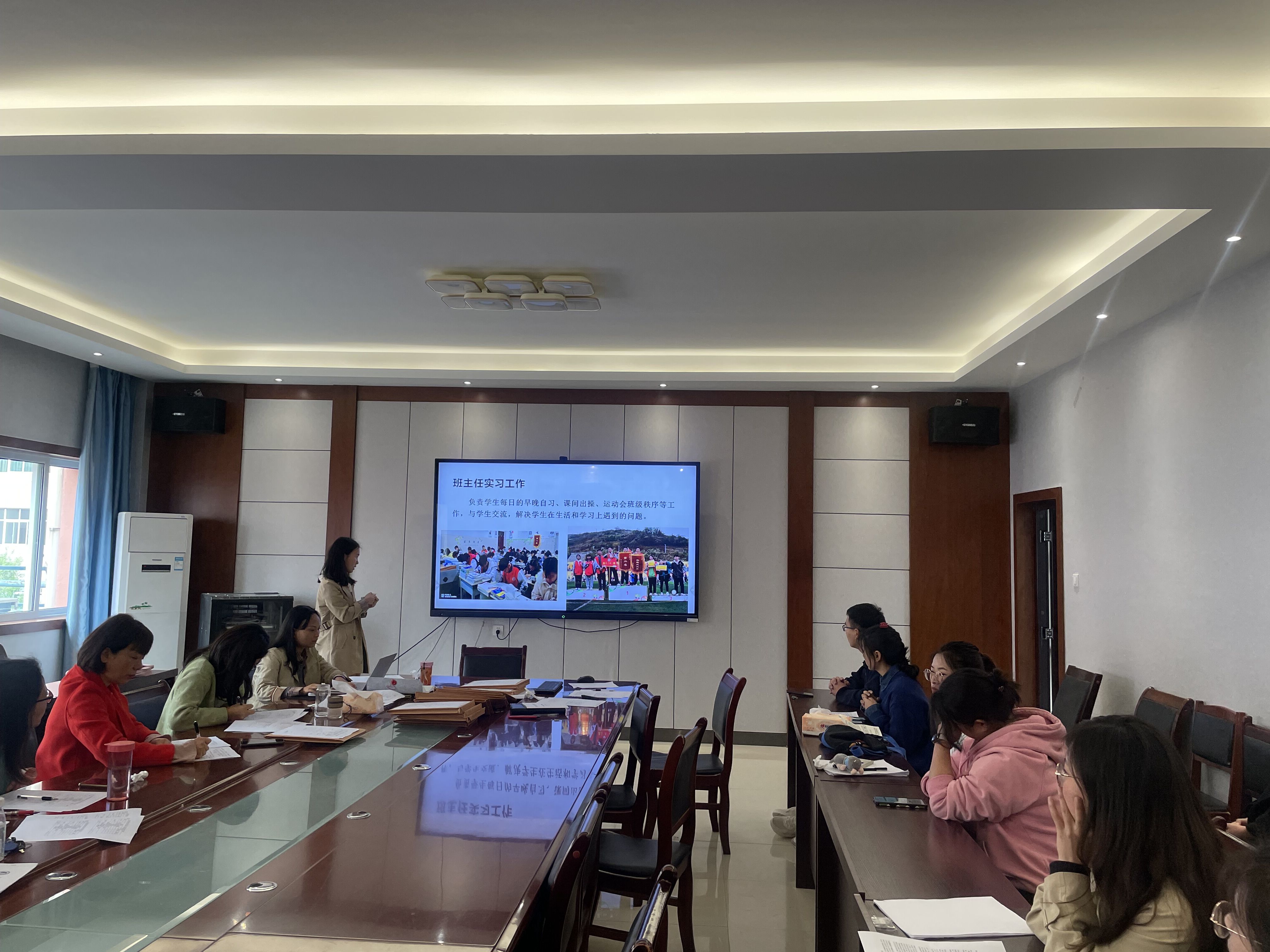 此次评分主要分3部分:实习材料、实习收获与成果以及现场汇报表现。汇报前,考核组长将评选细则和流程进行详解。参与汇报的同学,大多身着正装,并于之前做好充分的准备,从实习准备、工作内容、实习收获、未来展望等方面进行汇报,评委老师现场评分,最终确定各专业的校级优秀实习生和院级优秀实习生名单。