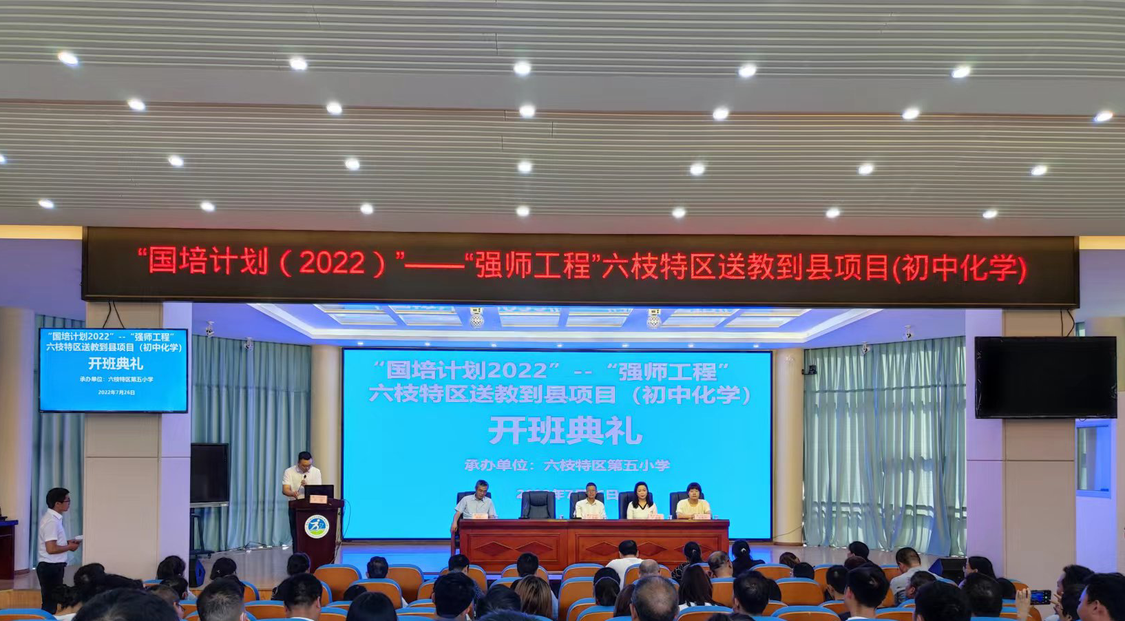7月26日,“国培计划(2022)”——“强师工程”六枝特区送教到县项目(初中化学)开班仪式在六枝特区第五小学举行。区教育局教研员王勇权、美加墨世界杯官网培训专家代表宋万琚、余跃东、继续教育公司党政办公室主任吴江、培训班班主任冉晓燕、李艳莹以及参训学员参加了开班仪式。仪式由王勇权主持。
