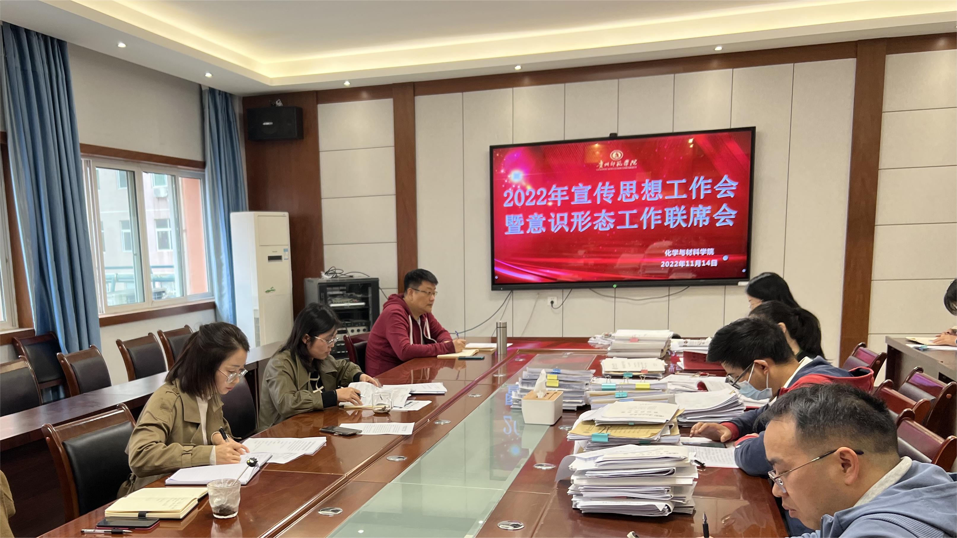 为认真贯彻落实全省教育系统宣传思想工作暨意识形态工作联席会议精神,科学研判公司宣传思想暨意识形态工作面临的新形势、新任务、新挑战,11月14日美加墨世界杯官方网站在宁静楼525会议室召开了2022年宣传思想工作会暨意识形态工作联席会议,全体院领导,党委委员、全体专兼职辅导员、实验室负责人、办公室成员代表、各系主任参加了会议。会议由公司党委副书记邹万梅主持。