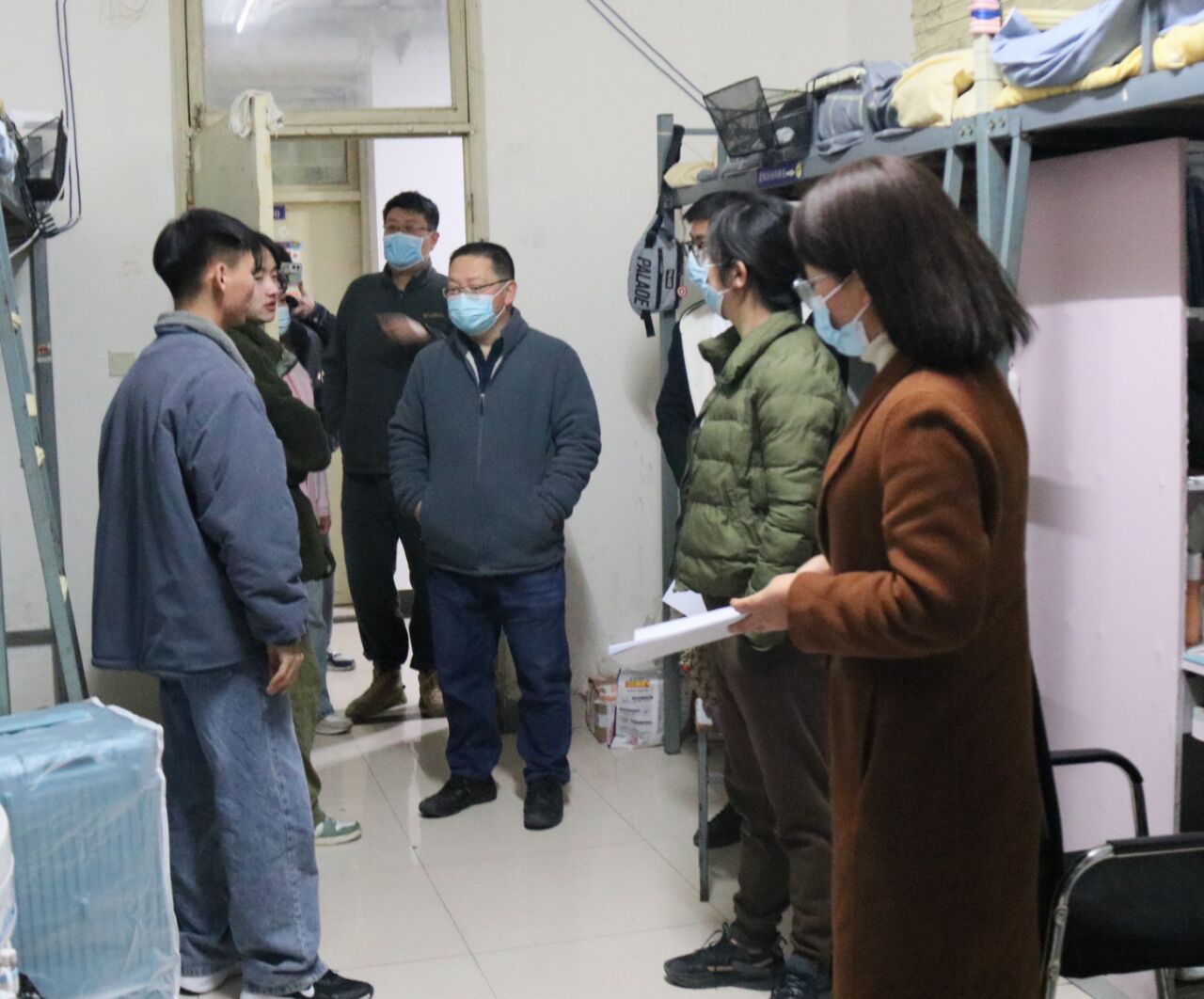 查寝过程中,公司班子成员,辅导员班主任老师们悉心询问,亲切问候,热情交谈,询问学子身体状况、返校适应情况、上学期的学习考试情况、毕业生的论文准备和就业情况等。并叮嘱广老员工养成良好的学习生活习惯,以积极热情的态度、展新的面貌投入到新学期。