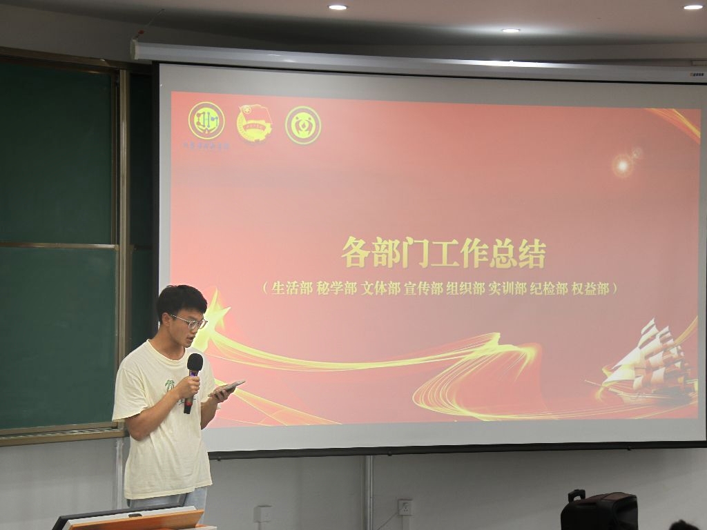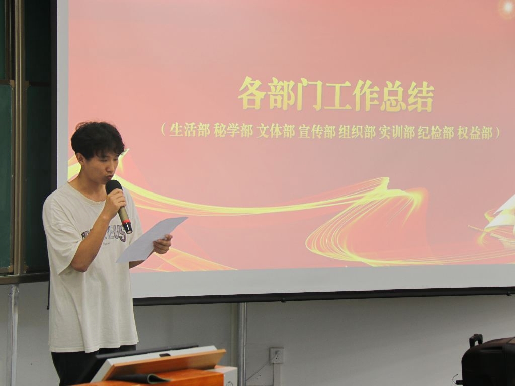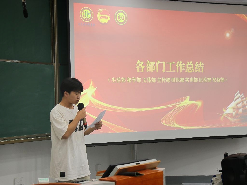 徐佳丽代表主席团对院团委的工作作总结汇报,生活部、秘学部、文体部等8个部门分别依次进行汇报和交流。在工作问题探讨与交流环节,各部门对开展工作中的难点、痛点问题进行交流和探讨,大家集思广益同题共答。主席团成员周光祥对近期和下学期的工作重点进行有序安排。