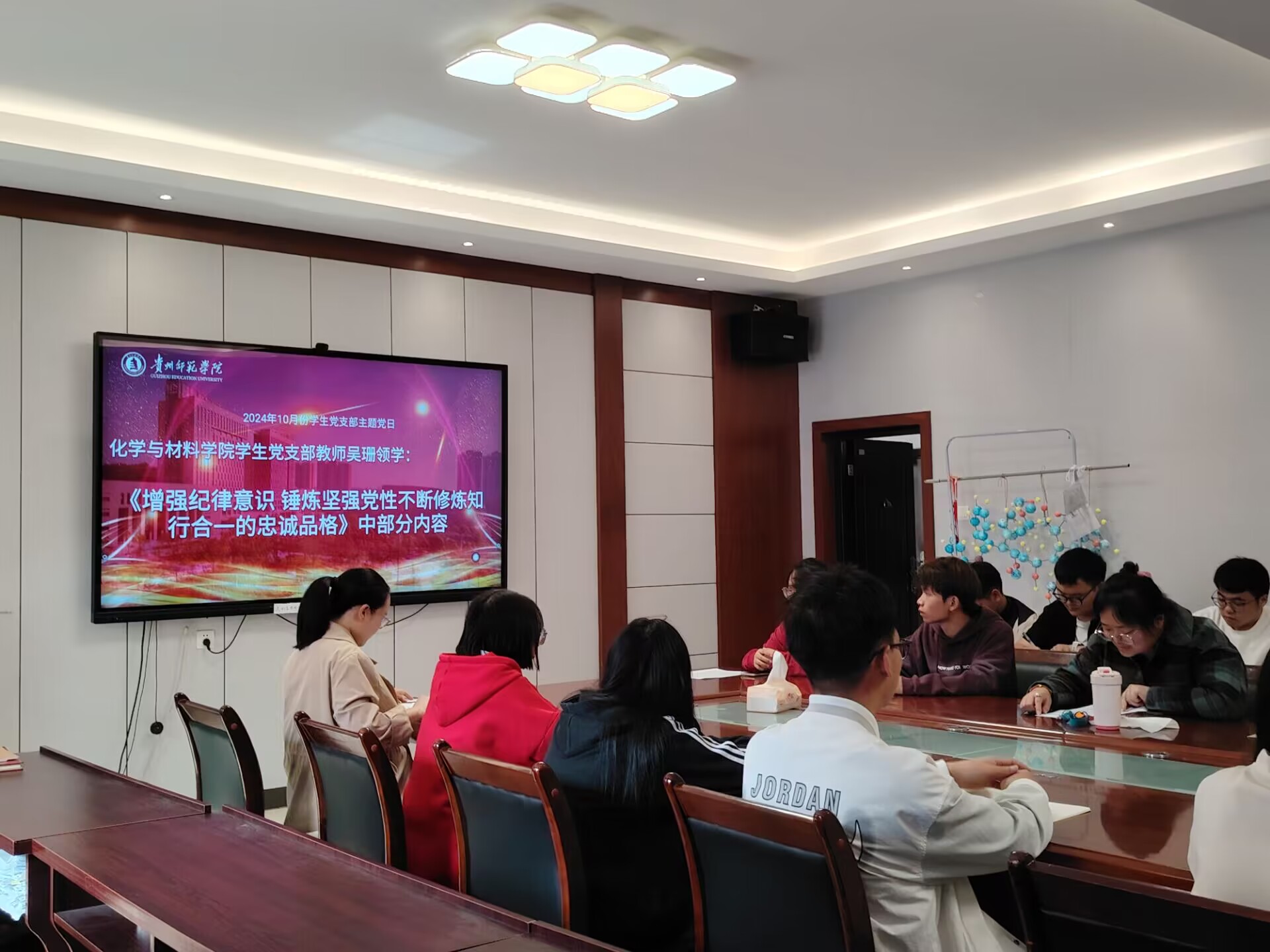吴珊领学了《增强纪律意识锤炼坚强党性不断修炼知行合一的忠诚品格》中部分内容。吴珊表示,作为党员教师应该积极发挥自己的光和热,做员工锤炼品格的引路人、做员工学习知识的引路人,做员工创新思维的引路人,做员工奉献祖国的引路人。