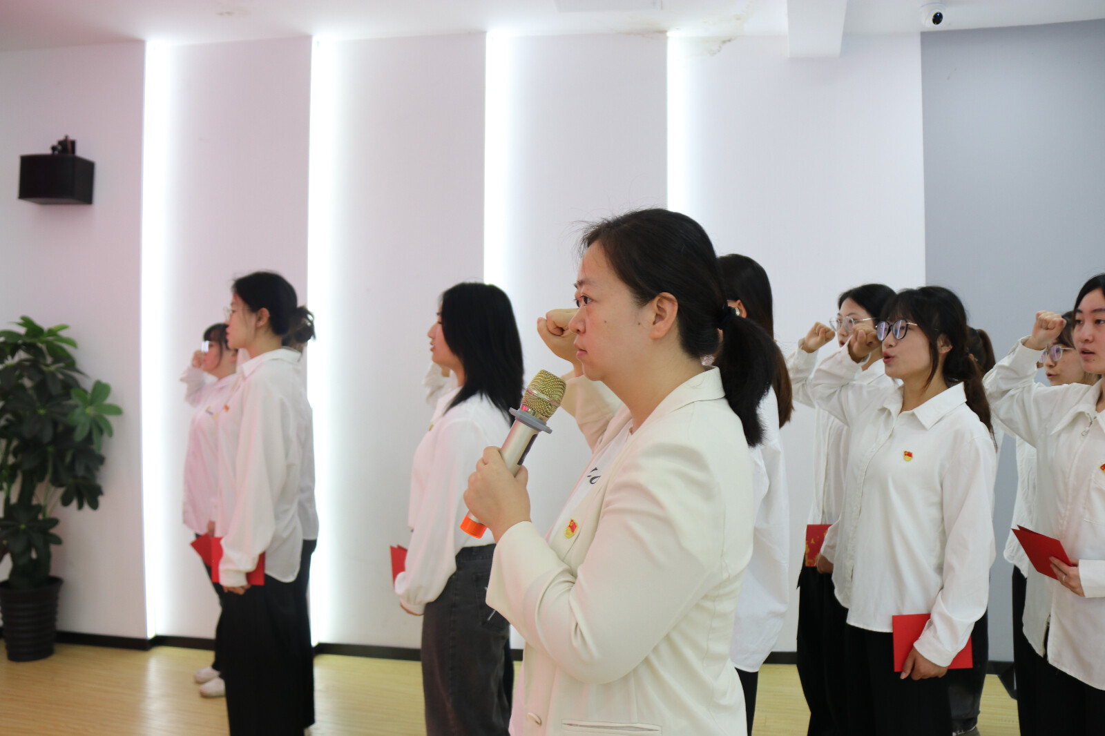 随后,党员先锋示范岗代表江雪清同志在发言中分享了自己的工作感悟,展现了党员的责任与担当,激励着全体党员在各自岗位上发光发热。大会还举行了新发展党员入党仪式。老党员为新党员佩戴党徽、颁发政治生日贺卡,全体新党员在罗荣的带领下进行入党宣誓,老党员一同重温入党誓词。新发展党员代表马渺渺同志发言,表达了对党的无限热爱和为党的事业奋斗终身的决心。