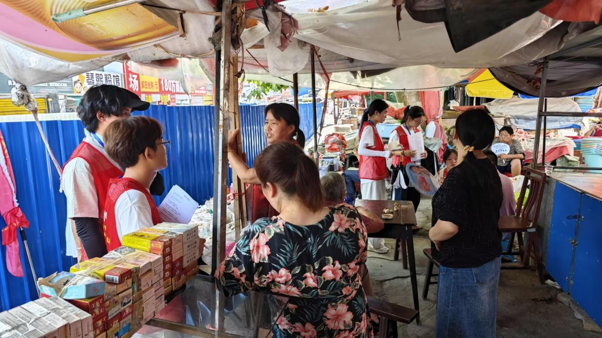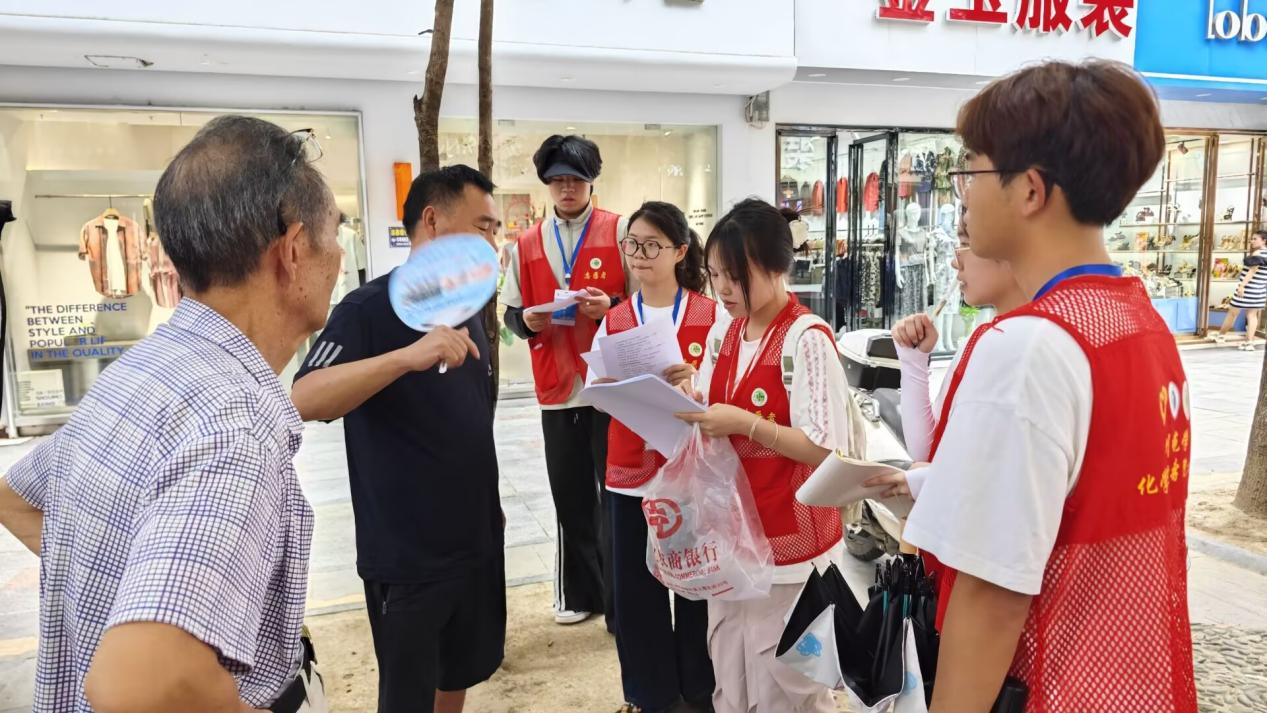 短暂的午休后,乡村振兴团队转场至印江土家族苗族自治县中心广场,这里是县城居民日常休闲的聚集地,也是开展社会调研的理想场所。调研的核心内容围绕居民对垃圾分类、食品安全和防诈骗的认知展开。