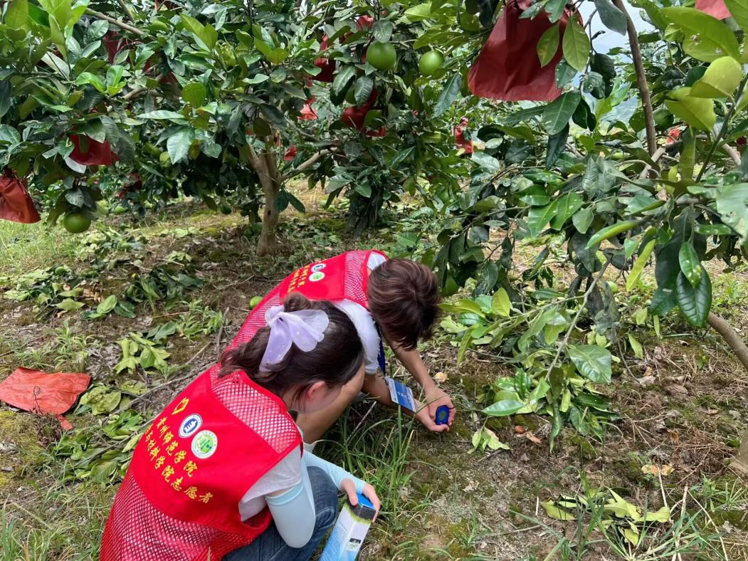 志愿者在柚子园进行土质检测