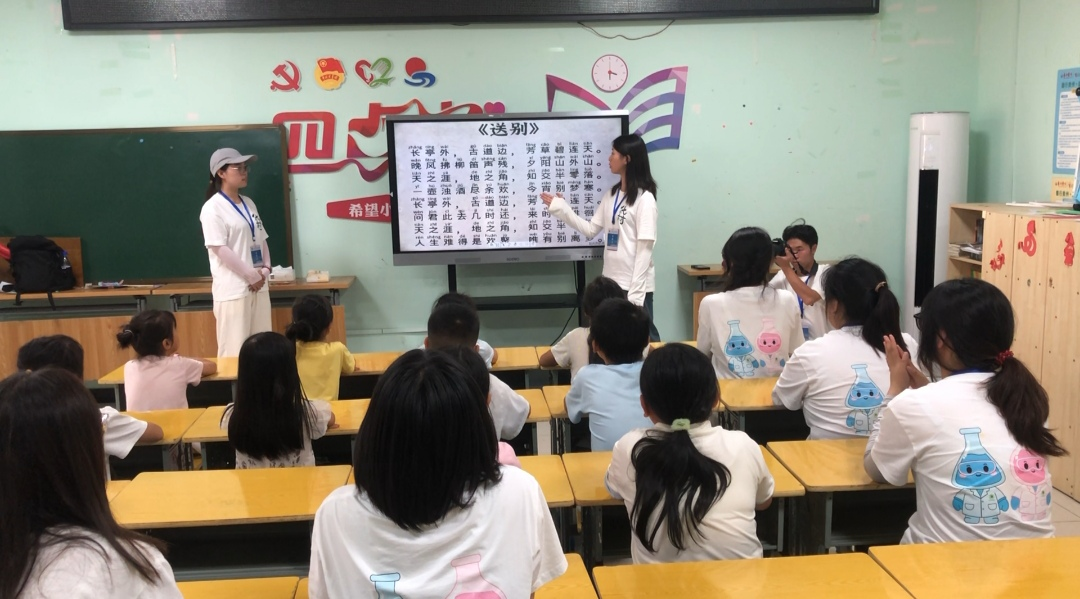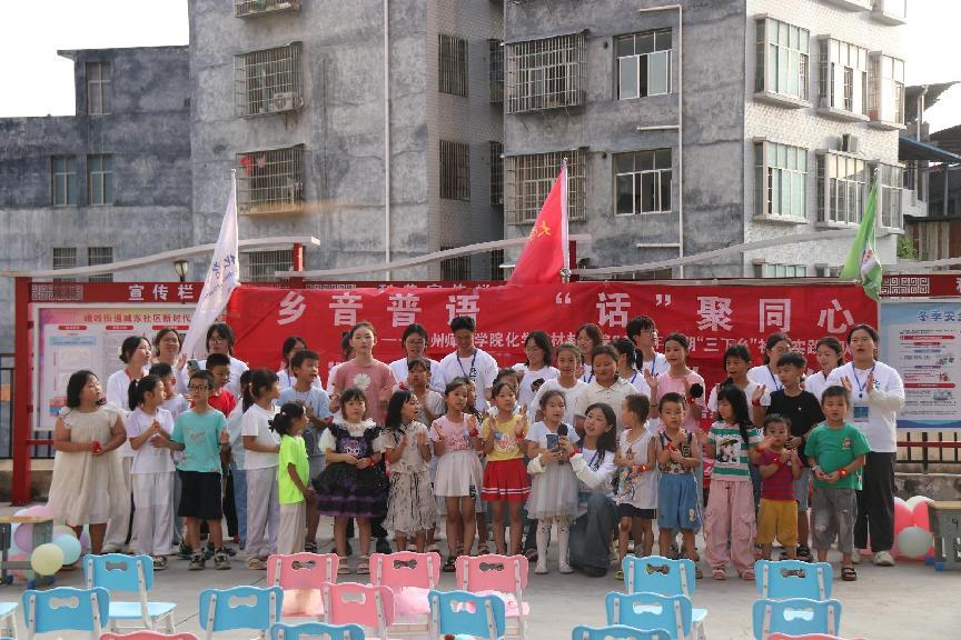 傍晚,志愿者们与孩子们共同呈现了一场轻松却难忘的文艺汇演活动,孩子们用普通话朗诵诗歌、演唱歌曲,志愿者则表演了精心准备的语言类节目。汇演尾声,双方互赠祝福,标志着本次三下乡推普实践活动圆满落幕。