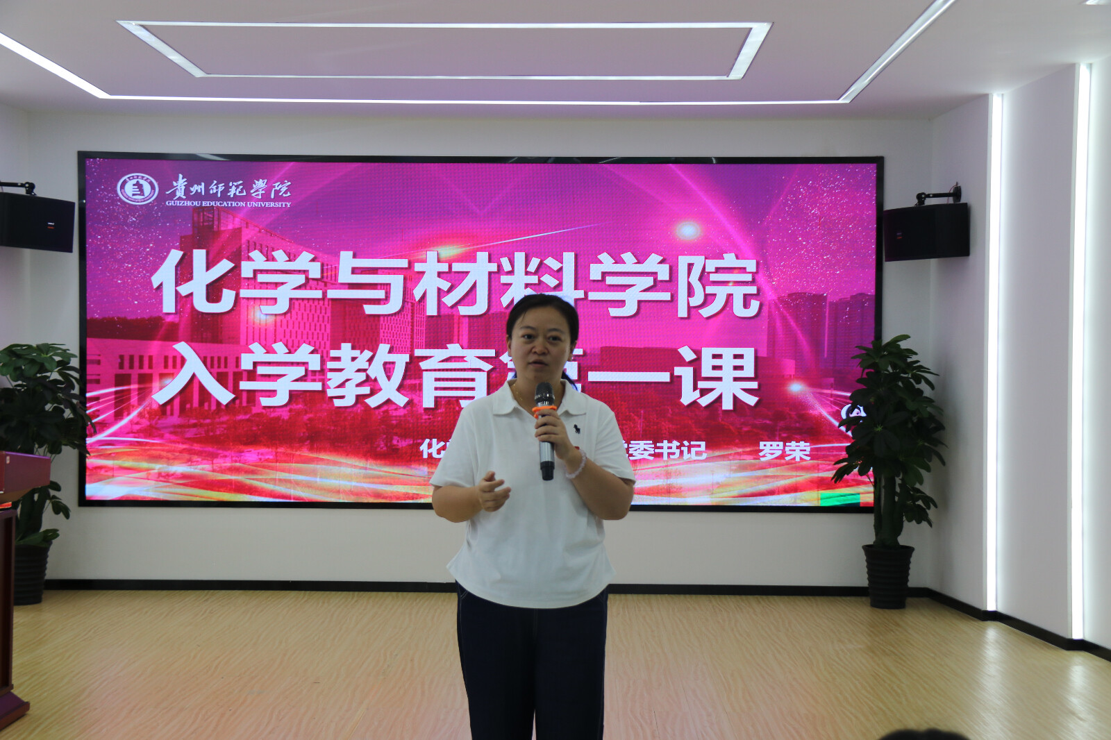 接着,罗荣开展入学教育,为新生上了一堂生动的“书记第一课”。她鼓励新生要及时调整心态,主动适应大学的学习与生活节奏,积极践行“扎根、修德、勤学、笃行”的成长理念。课上,她还结合化学、应用化学、材料科学与工程专业的学科特点与发展前景,帮助新生增强专业认同、树立学业目标。她还建议同学们主动与老师交流请教,在集体生活中学会包容、乐于互助,与同侪一道成长、共同进步。