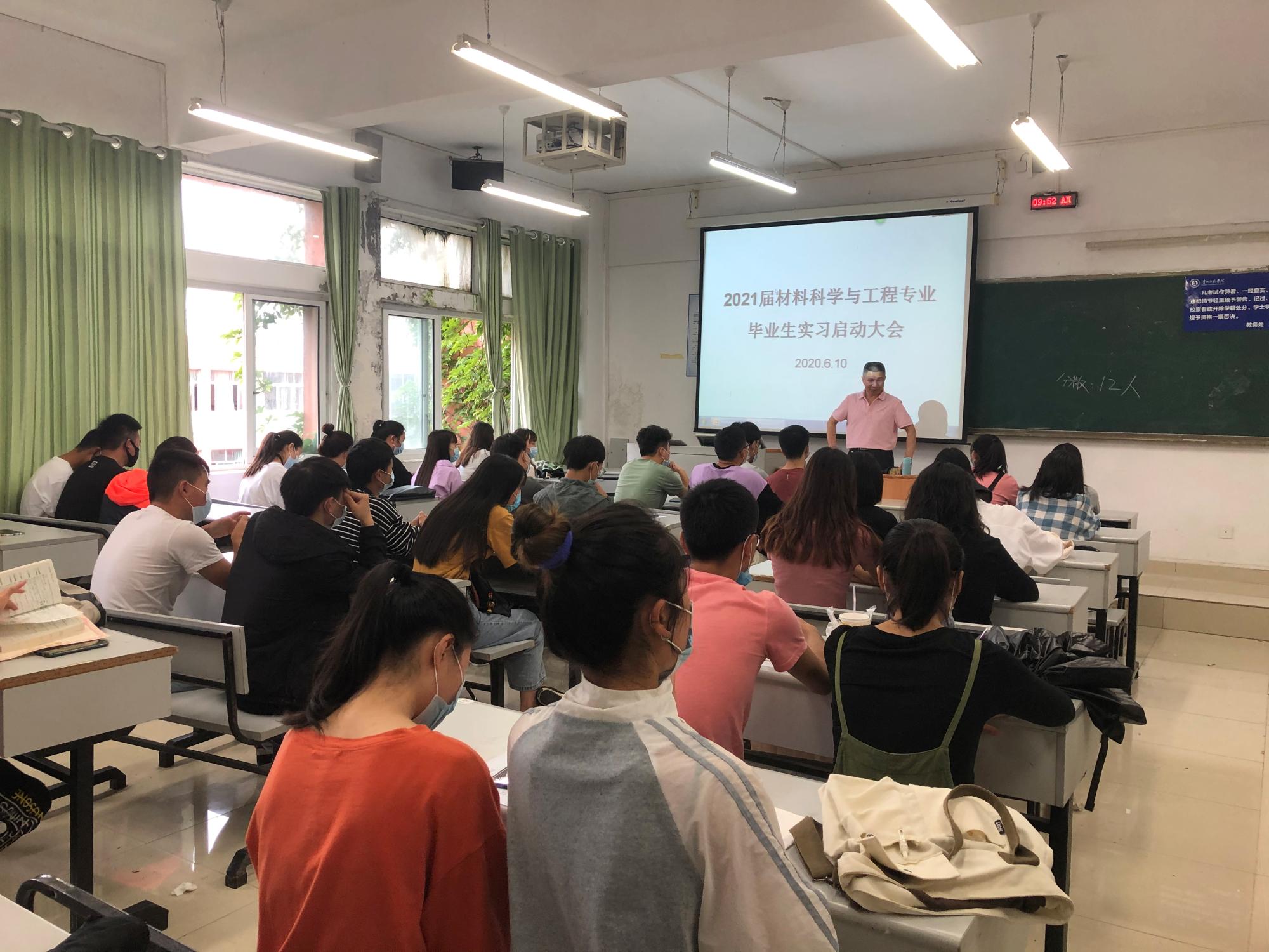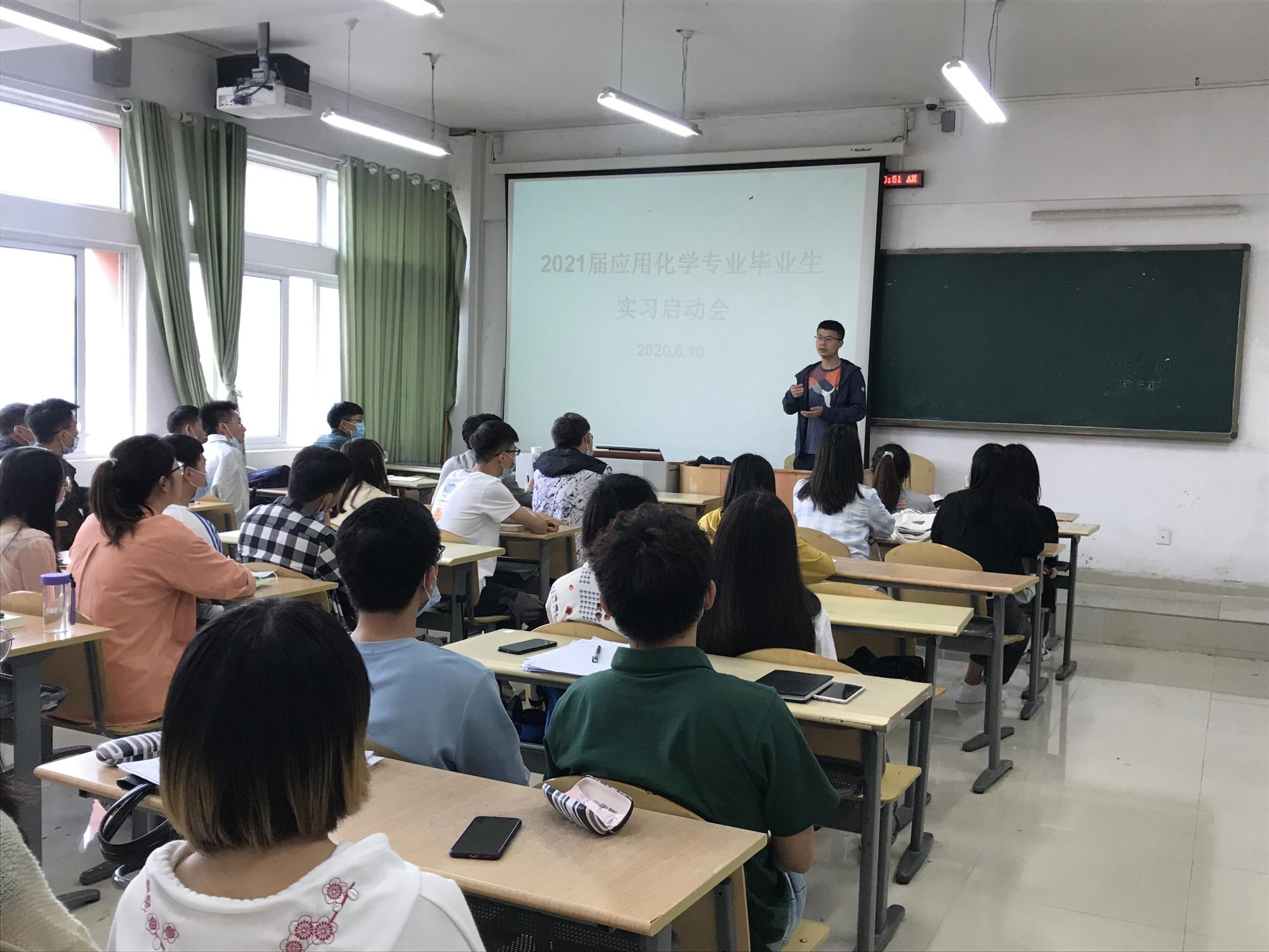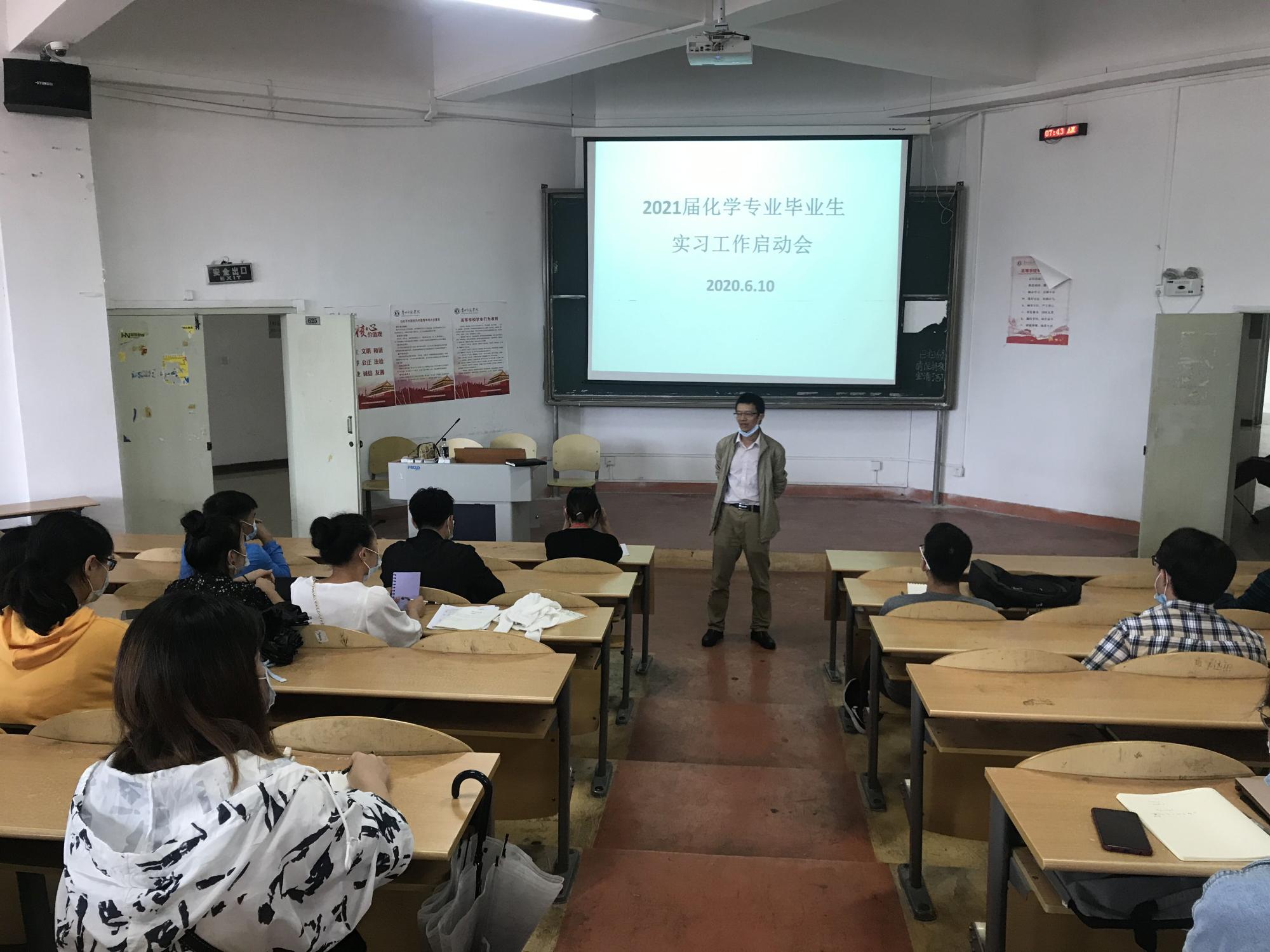 6月10日,美加墨世界杯官方网站2021届各专业毕业生召开实习工作动员大会。党总支书记何毅,副书记、经理宋万琚,副书记张坤,实践教学办公室负责人李艳莹,材料科学与工程专业系主任周进康、牛延慧,应用化学专业系主任龙攀峰、徐科,化学专业系主任孙成涛、徐海丽及2021届毕业生全体人员参加了实习启动会。会议由李艳莹主持。