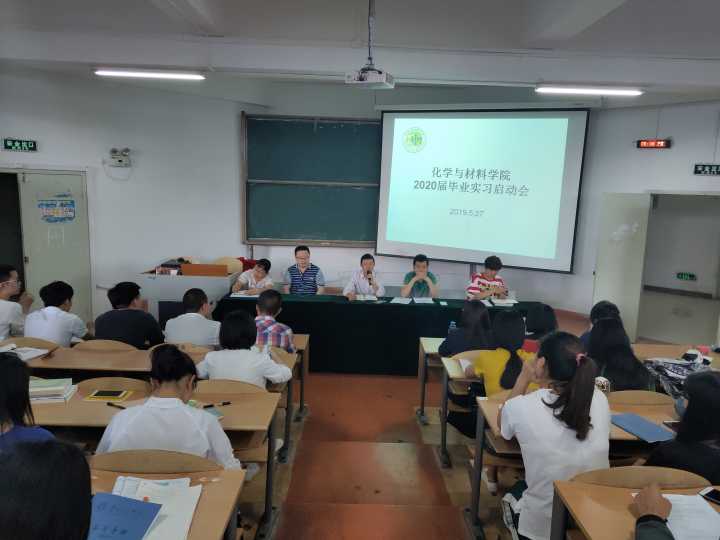 5月27日,化材公司2020届实习生动员大会在宁静楼536教室召开。公司党委副书记、经理宋万琚,党委副书记张坤,副经理王毓,实践教学办公室负责人李艳莹,辅导员老师李璐琳,实习指导老师代表,2019届优秀实习生以及2020届毕业生全体人员参加了实习启动会。会议由宋万琚主持。