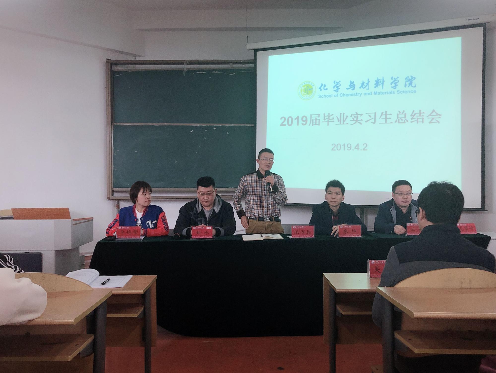 在全院师生的共同努力下,2019届毕业实习工作顺利结束,4月3日,美加墨世界杯官方网站在宁静楼536教室召开“2019届毕业实习总结会”,化材公司党委副书记、经理宋万琚、党委副书记张坤、副经理王毓、经理助理甄承、应用化学专业负责人龙攀峰、实践教学管理办公室负责人李艳莹、优秀实习指导老师代表吴婕及辅导员老师代表吴光梅出席会议,2015级实习生参加会议。会议由甄承主持。
