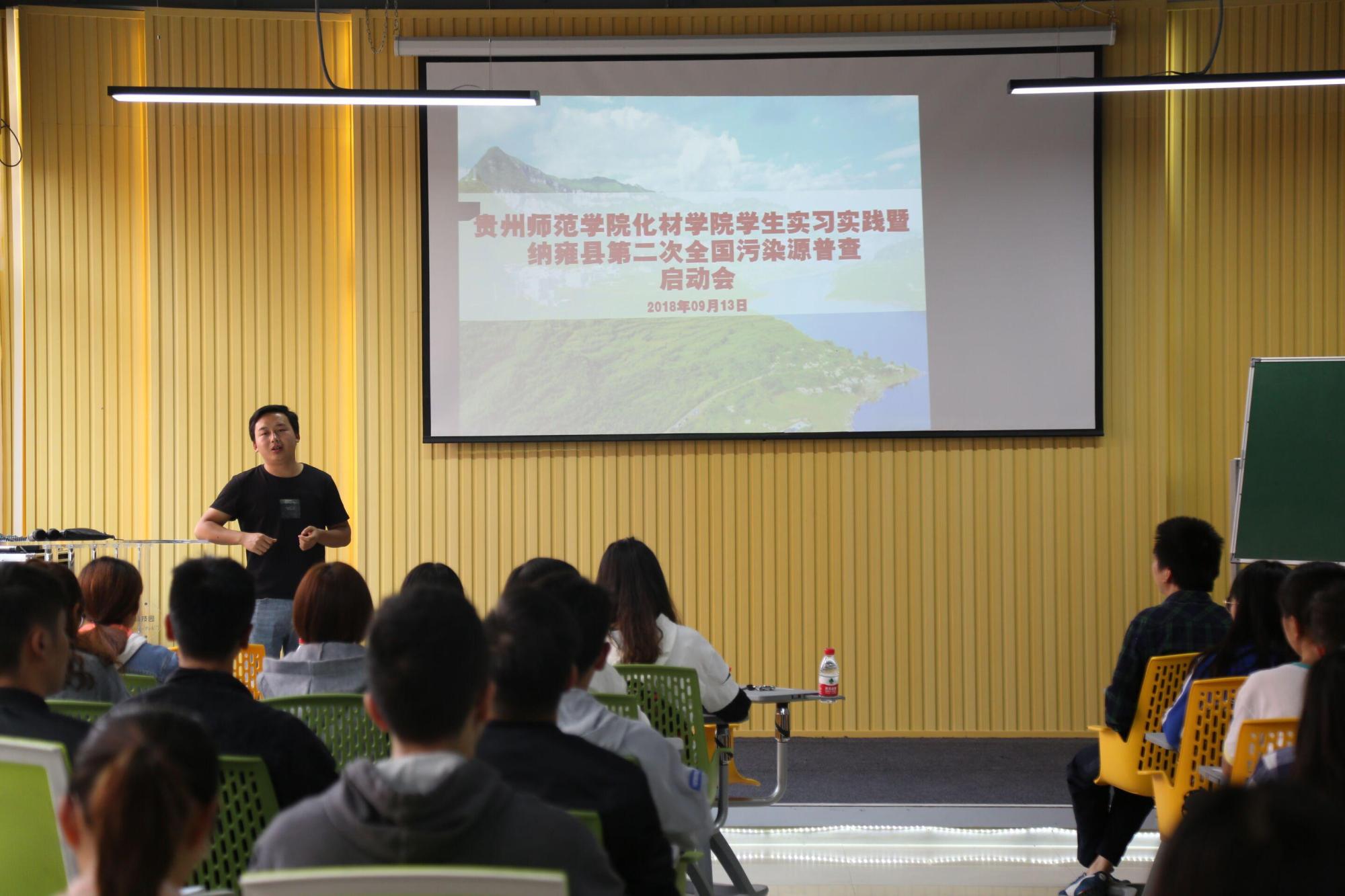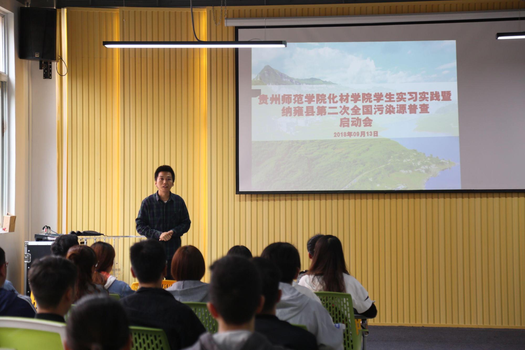 紧接着,纳雍县环保局办公室赵齐新主任向同学们介绍了这次污染源普查的背景、目的和意义,以及在实践过程中的注意事项,同时希望同学们把握机会,加强自身实践能力,进而为今后的就业奠定坚实的基础。