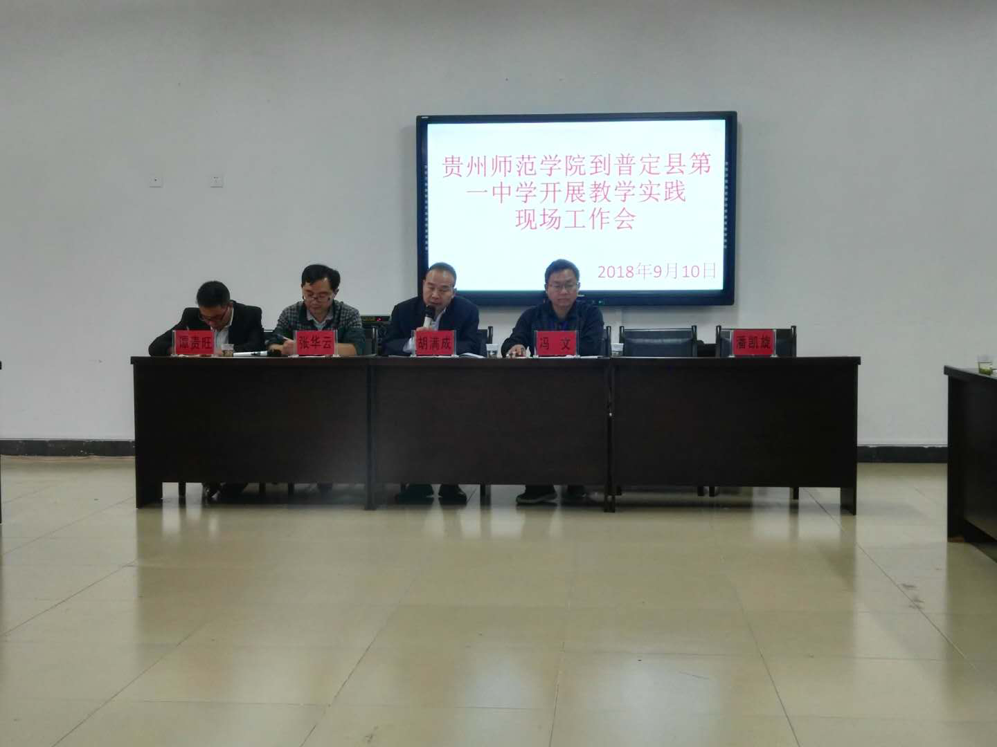 下午,在普定一中教学楼三楼会议室召开了实习生见面会,普定一中校领导、教导主任、公司优秀员工胡满成、实习指导教师参加了见面会。胡主任对2015级实习生的到来表示热烈欢迎,他充分肯定了美加墨世界杯官网往届实习生对工作认真负责的态度,希望同学们继续发扬这一优点,在实习过程中积累教学经验及提升教学能力。
