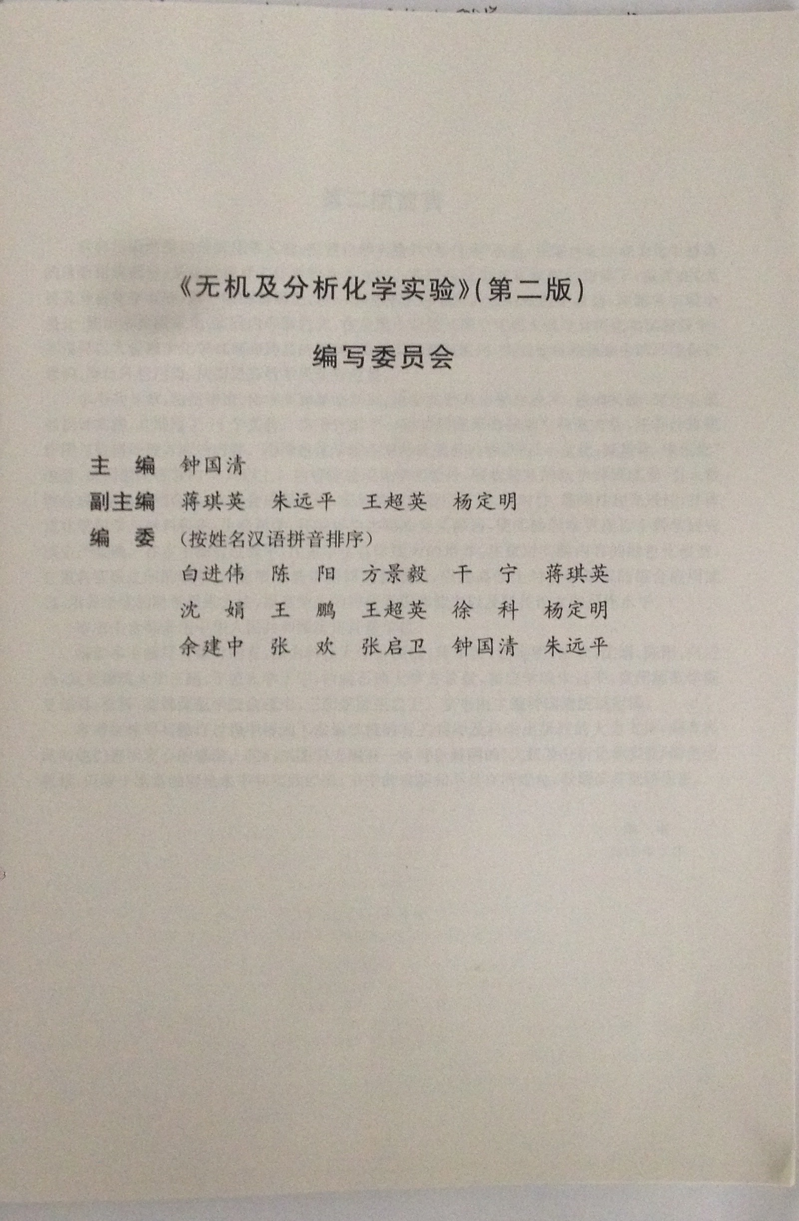 王超英、徐科老师参编教材:《无机及分析化学实验》(第2版),2015年,科学出版社:北京