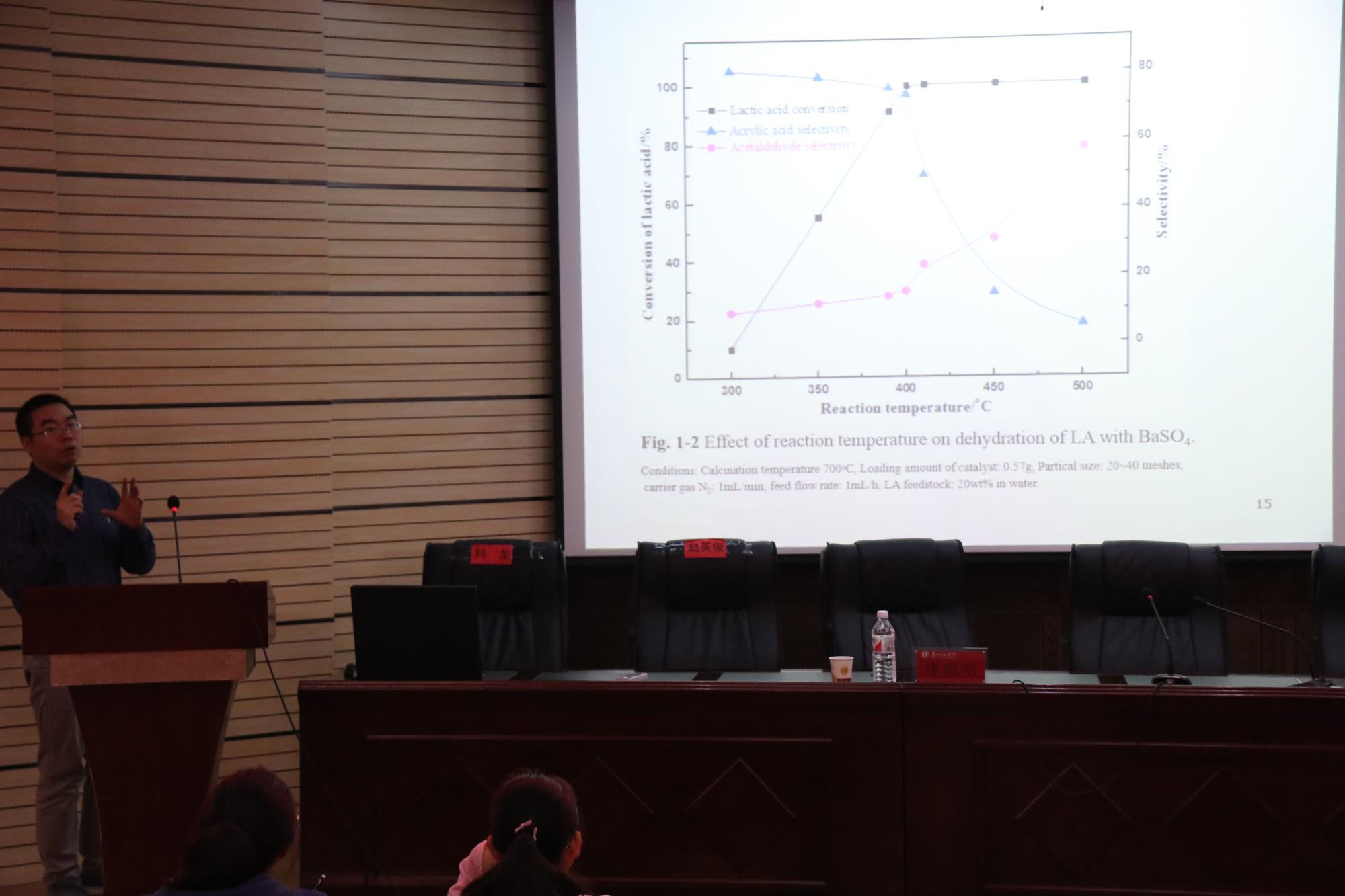 首先,唐聪明先向同学们做了自我介绍,然后从对化学这门学科的简要讲解中引入本次讲座的主题。其次,唐聪明分别从温度、酸碱度、接触面积等条件详细阐述对乳酸转化速率的影响,并强调控制反应条件在工业生产中的重要性。再次,唐聪明还指出同学们应学好多方面的知识,努力成为全面发展型人才,以迎合社会对化学专业人才的需求。最后,唐聪明向在座的同学提出了一些化学专业学习的建议,表达了他对同学们的殷切希望。