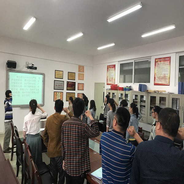 为庆祝中国共产党成立96周年,进一步增强师生党员同志的党性认识和责任意识,激励党员同志坚定爱党、信党、跟党走的理想信念。公司于6月16日在宁静楼525会议室开展了重温入党誓词主题党日活动。此次重温入党誓词主题党日活动由公司教师党员龙攀峰副教授领誓。全院师生党员参加了此次活动。
