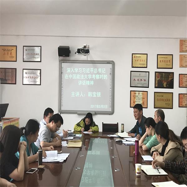 为深入学习领会习近平总书记在中国政法大学考察时的重要讲话精神,化学与生命科学公司5月5日下午在宁静楼525召开了“学习习近平总书记在中国政法大学考察时的讲话精神”专题会。此次学习由公司基层党委书记韩宝银主讲。公司全体教职工党员参加了此次会议。