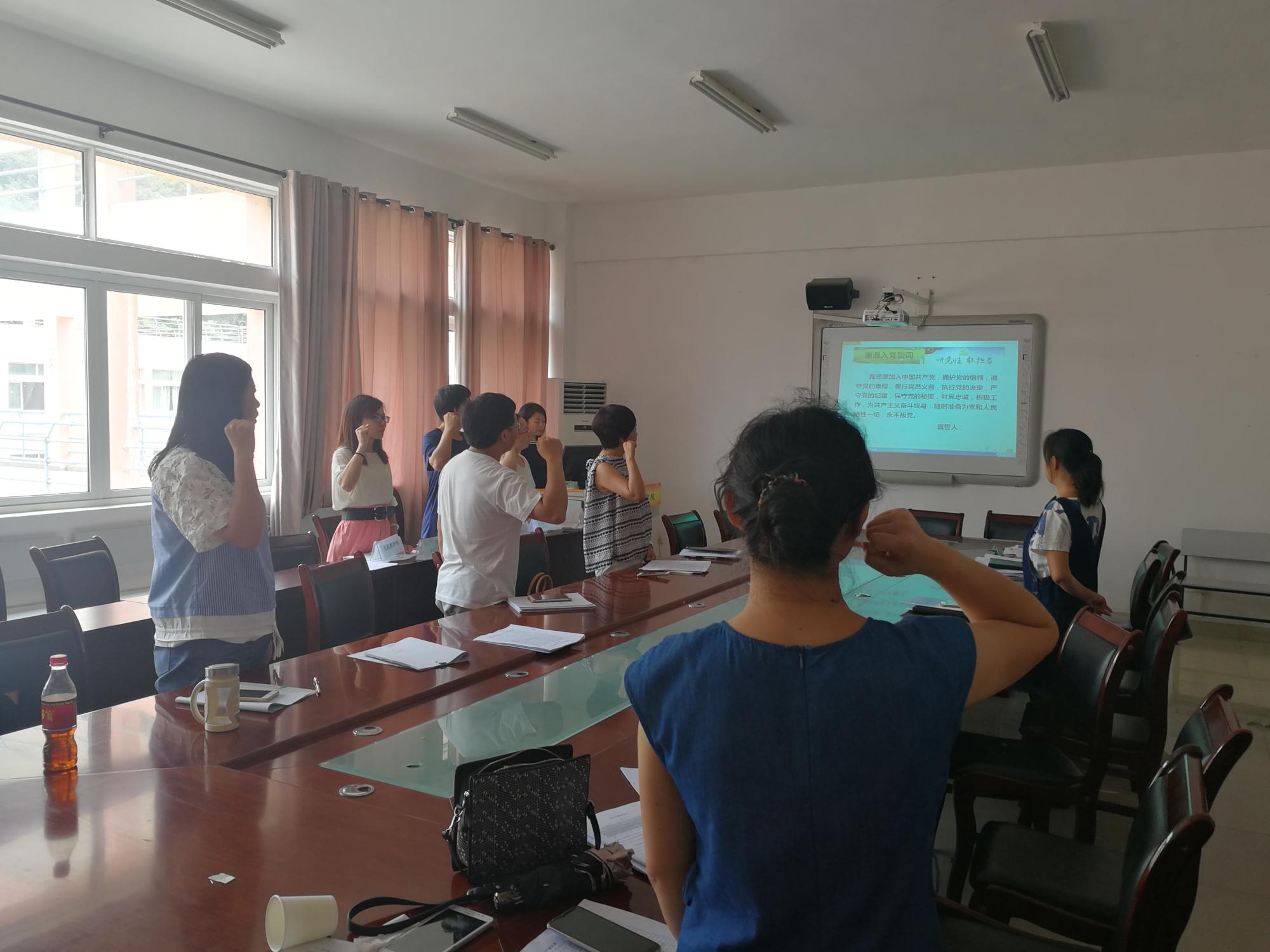 首先开展了“重温入党誓词”的教育活动。化生公司教工党支部书记杨燕讲述了“重温入党誓词”的重要意义,强调入党誓词是每一个共产党人向党和人民做出的庄严承诺,是共产党人的行动指南,是共产党员为实现自己人生最高价值所做出的无悔选择。接着,全体党员在教工党支部组织委员周玫老师的带领下,面对党旗,举起右手,再次发出铮铮誓言,表达了为党的事业奋斗终身的决心。紧接着开展了“迎七一·党在我心中”专题研讨,并组织全体党员教师观看电影《建党伟业》。