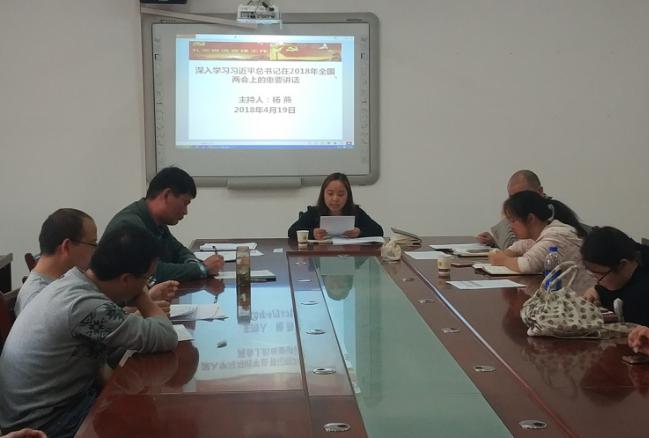 4月19日下午,化生公司教工党支部“学习全国两会精神和习近平总书记重要讲话”暨“两学一做”学习教育专题学习会在宁静楼525会议室召开,会议由教工党支部书记杨燕老师主持,全体教工党员出席了会议。