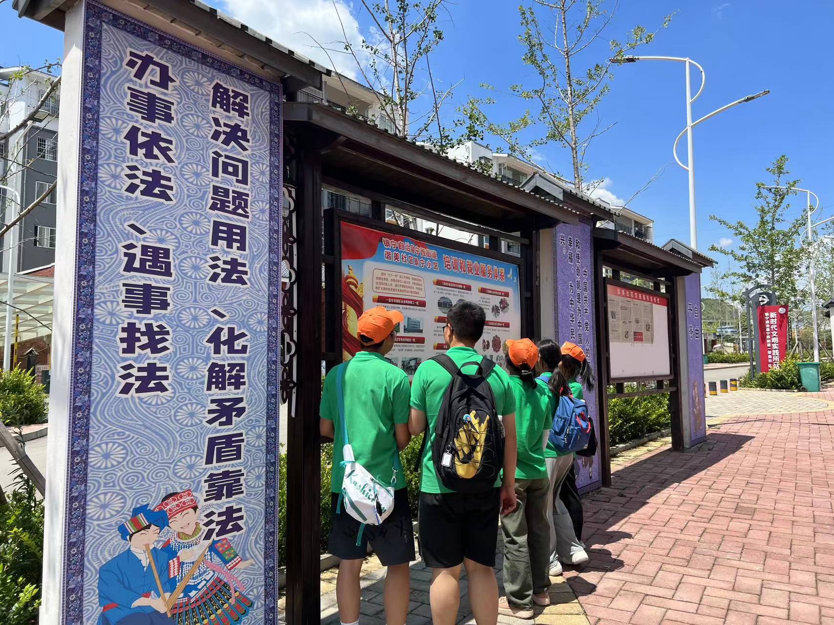 实践队员参观社区文化展板