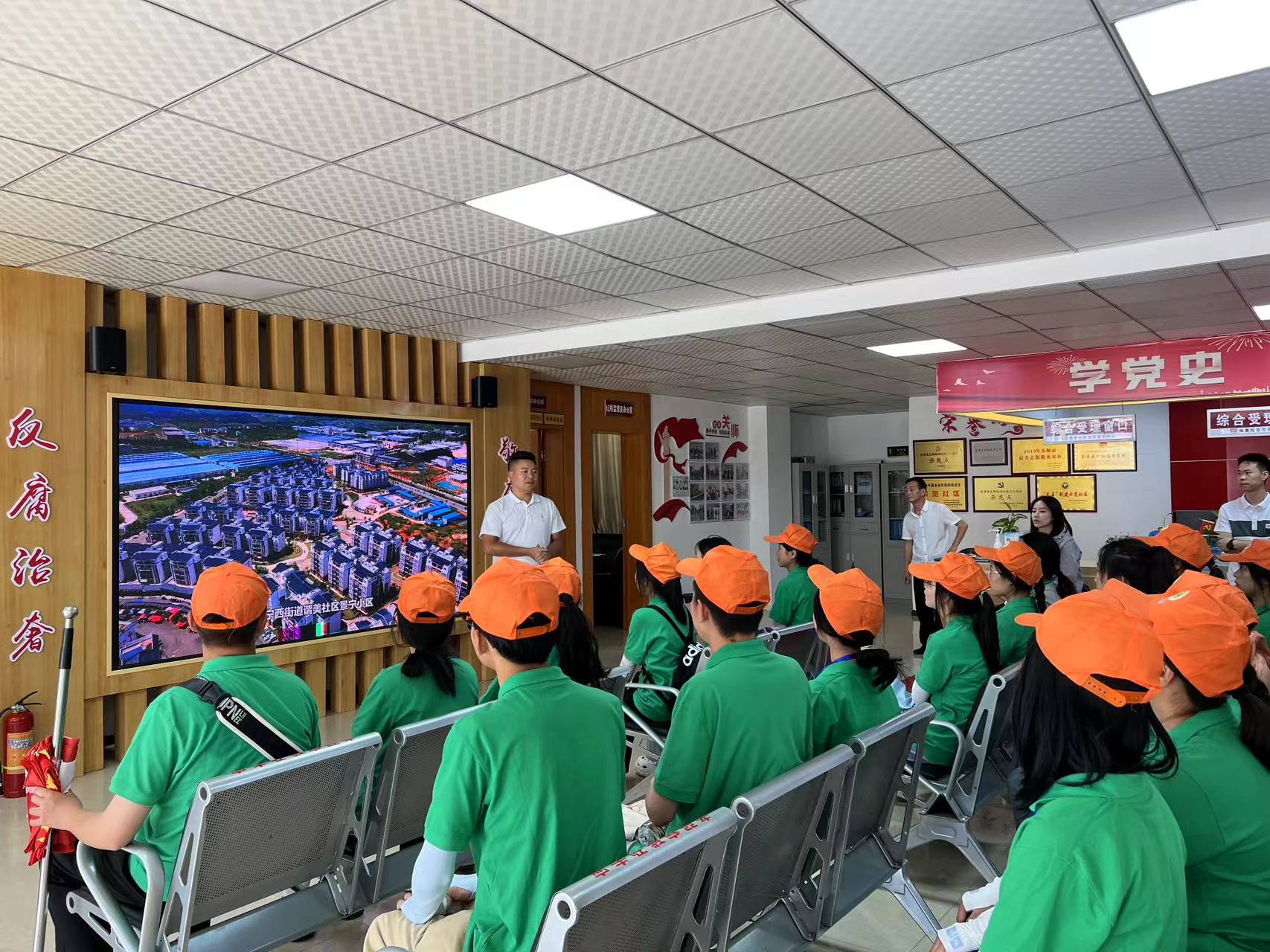 实践队员认真听街道办工作人员宣讲