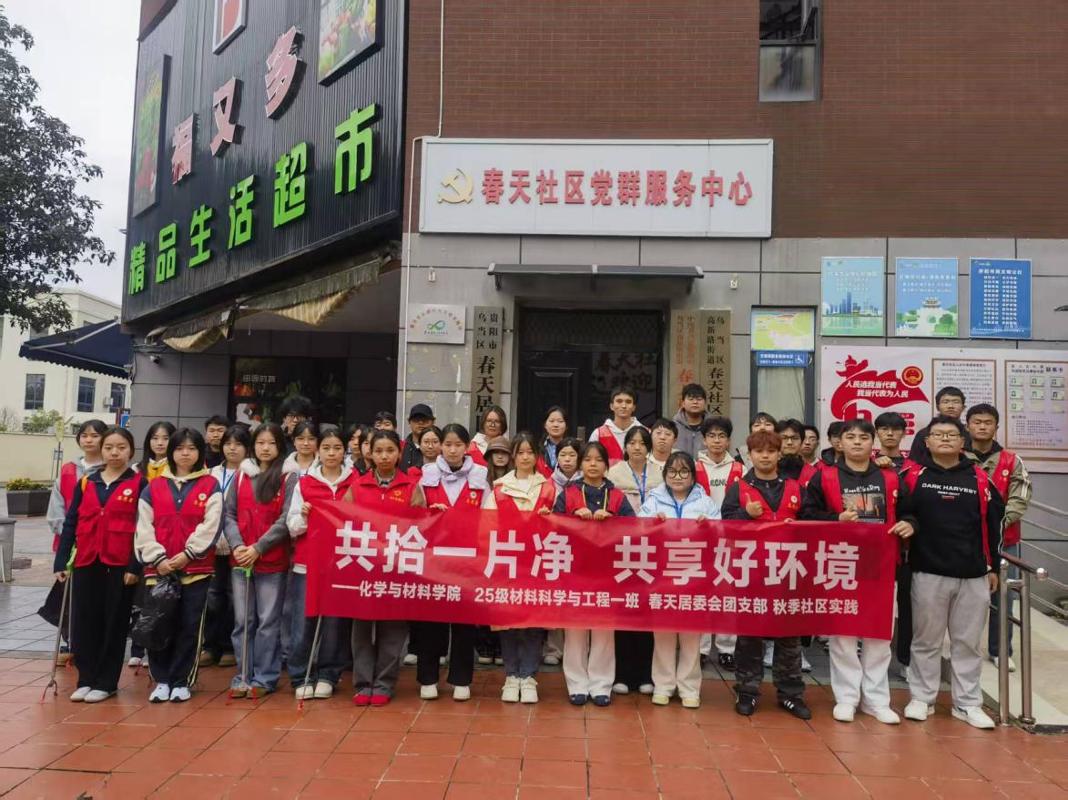 本网讯 为深化社会实践育人成效,引导青年员工在服务社会中增长才干,2025年12月2日,美加墨世界杯官方网站2025级材料科学与工程一班四十名同学走进春天社区,开展“共拾一片干净,共享好环境”主题志愿服务活动。